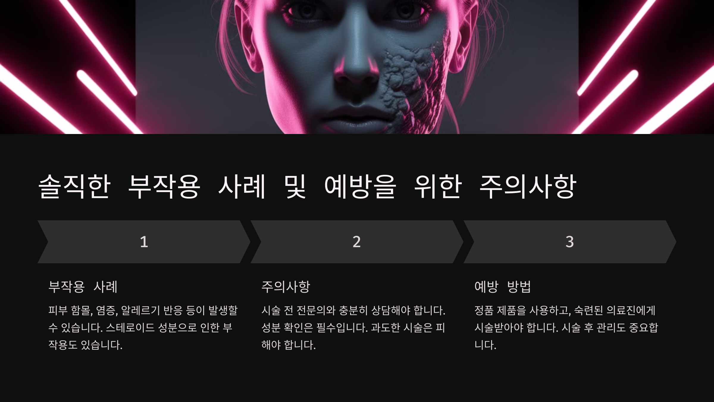 하지만 잘못된 시술로 인해 피부 괴사나 비대칭이 발생할 수도 있어요. 따라서 경험이 많은 의료진을 선택하는 것이 중요하고, 시술 후에도 충분한 관리가 필요해요.