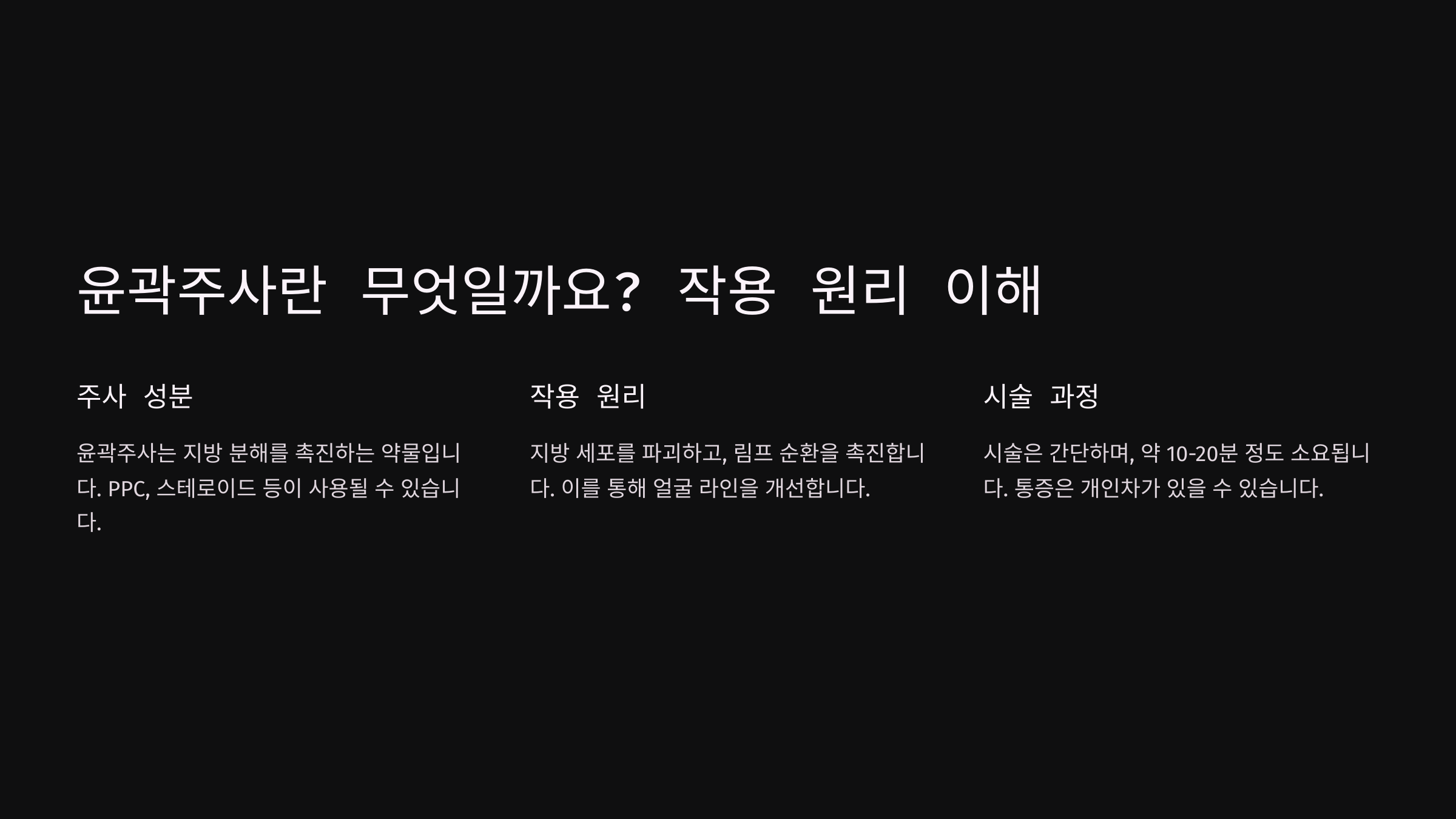 그럼 본격적으로 윤곽주사에 대한 진실을 하나씩 파헤쳐 볼까요? 👀