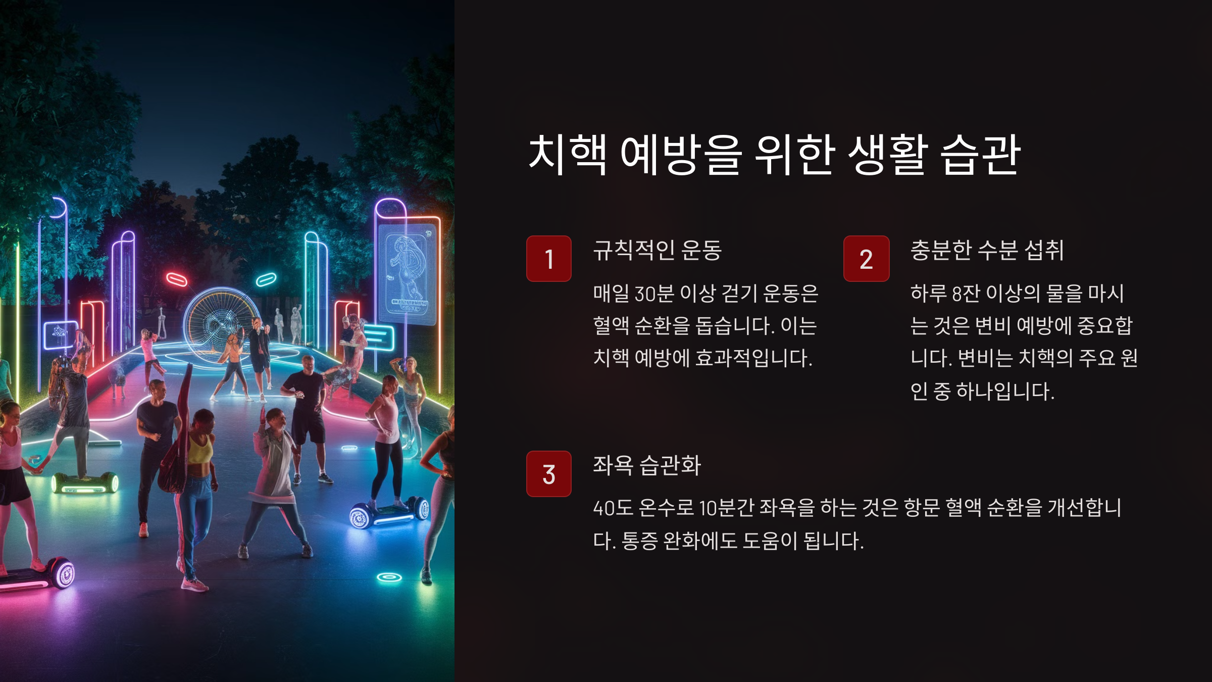 치핵은 한 번 생기면 재발하기 쉬운 질환이에요. 그렇기 때문에 미리 예방하는 것이 가장 중요하답니다! 😃 오늘 배운 내용을 실천해서 건강한 생활을 유지해 보세요!