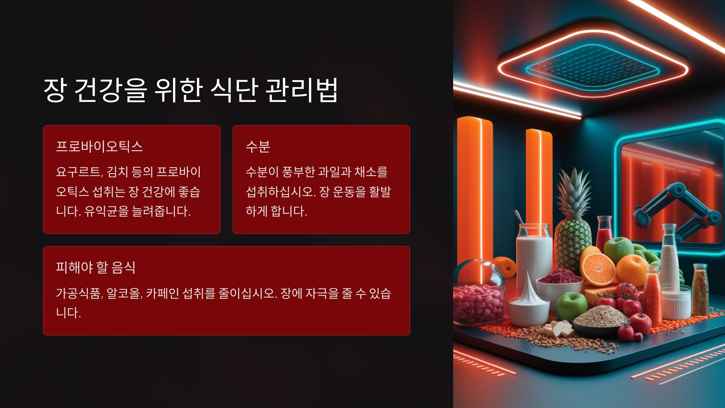 이제 장 건강을 위해 어떤 음식을 먹으면 좋은지 살펴볼까요? 🍽️