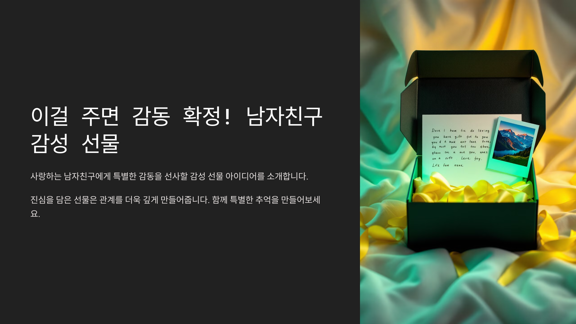 깜짝 이벤트와 함께하는 선물은 단순한 물건이 아니라 추억이 돼요! 🎉 남자친구가 평생 기억할 감성 선물을 준비해보세요.