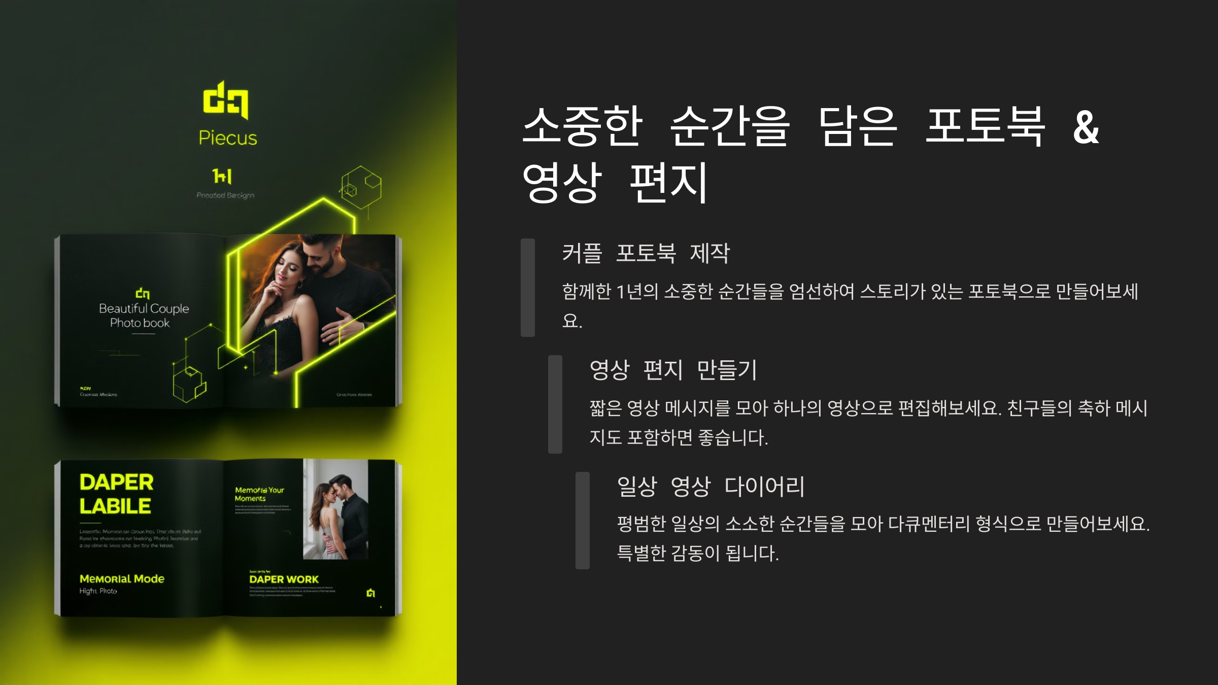 다음은 '소중한 순간을 담은 포토북 & 영상 편지'를 소개할게요! 📸🎞️