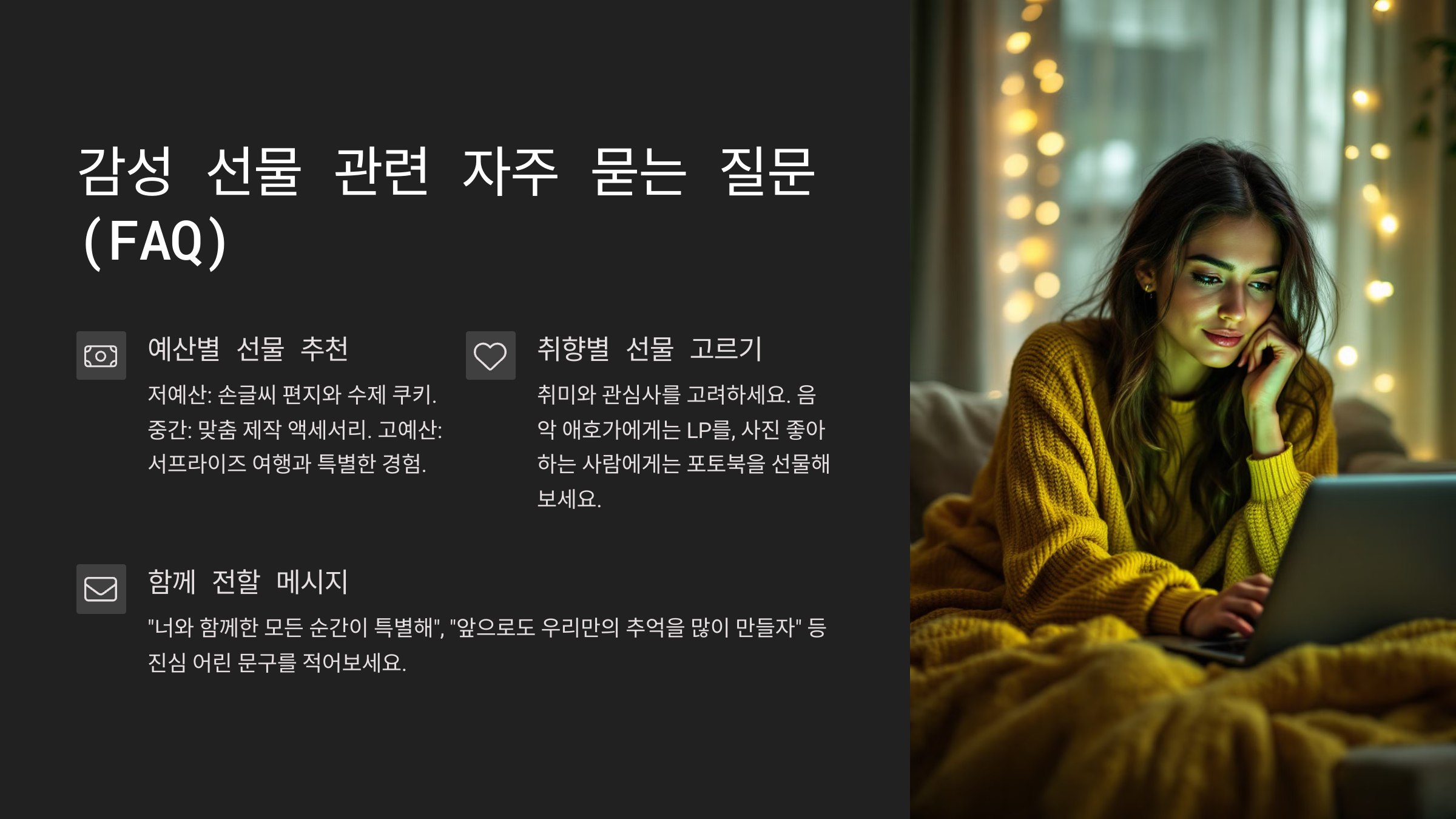 다음은 '감성 선물 관련 자주 묻는 질문 (FAQ)'을 소개할게요! ❓