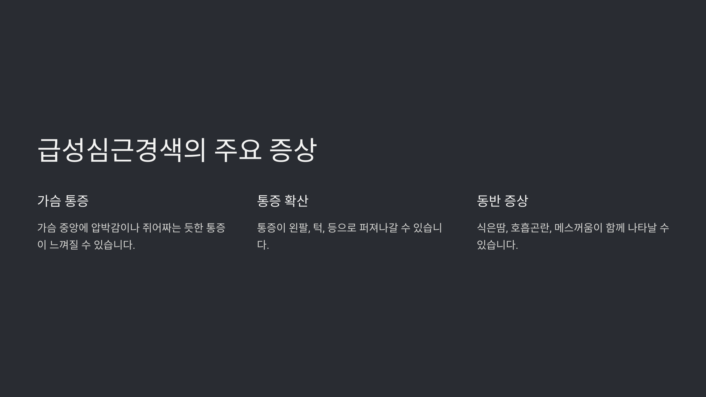 🎯 급성심근경색에 대한 모든 정보를 정리했어요! 심근경색의 증상, 원인, 예방법, 응급 대처법까지 꼼꼼하게 알아봤어요.