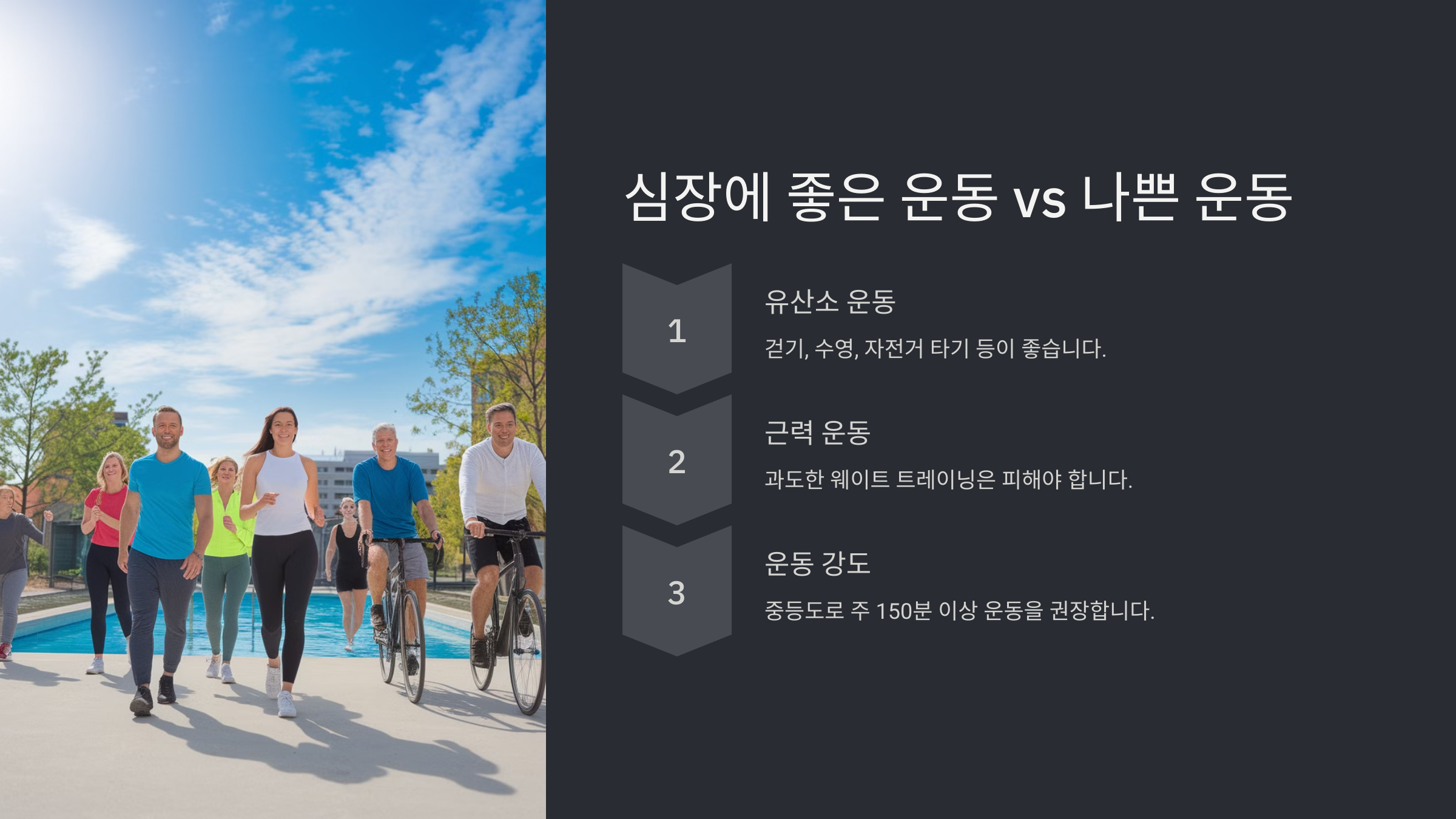 🔥 이제 "운동이 해답? 심장에 좋은 운동 vs 나쁜 운동"에 대해 알아볼 차례예요!