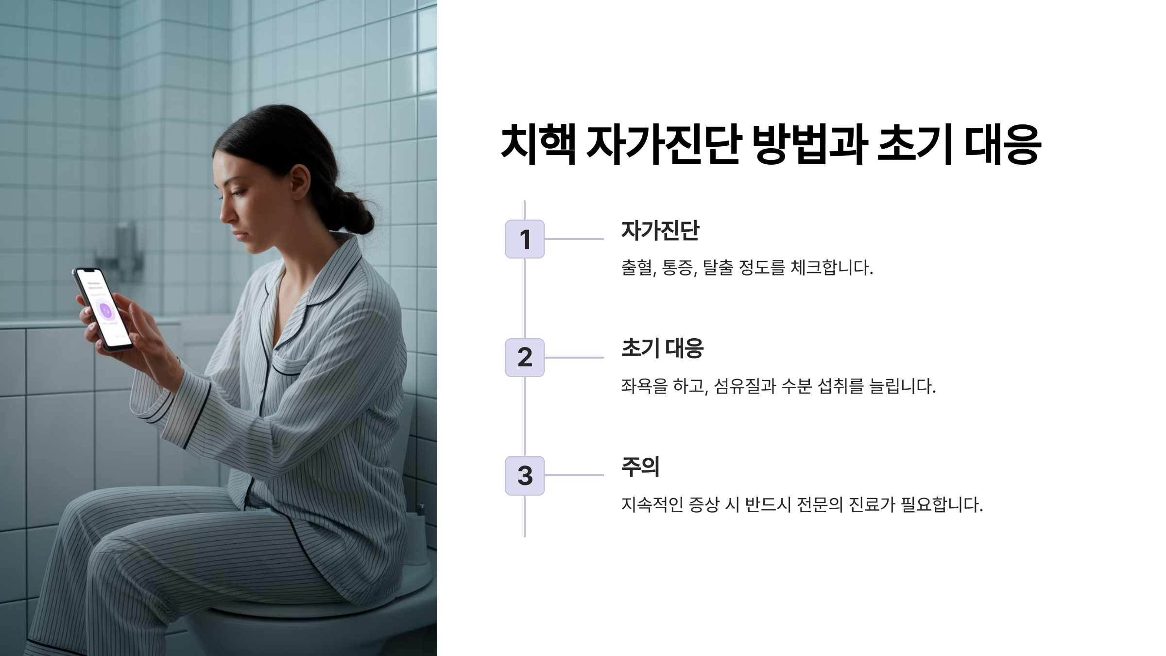 🔽 이제 치핵 자가진단 방법과 초기 대응에 대해 알아볼게요!
