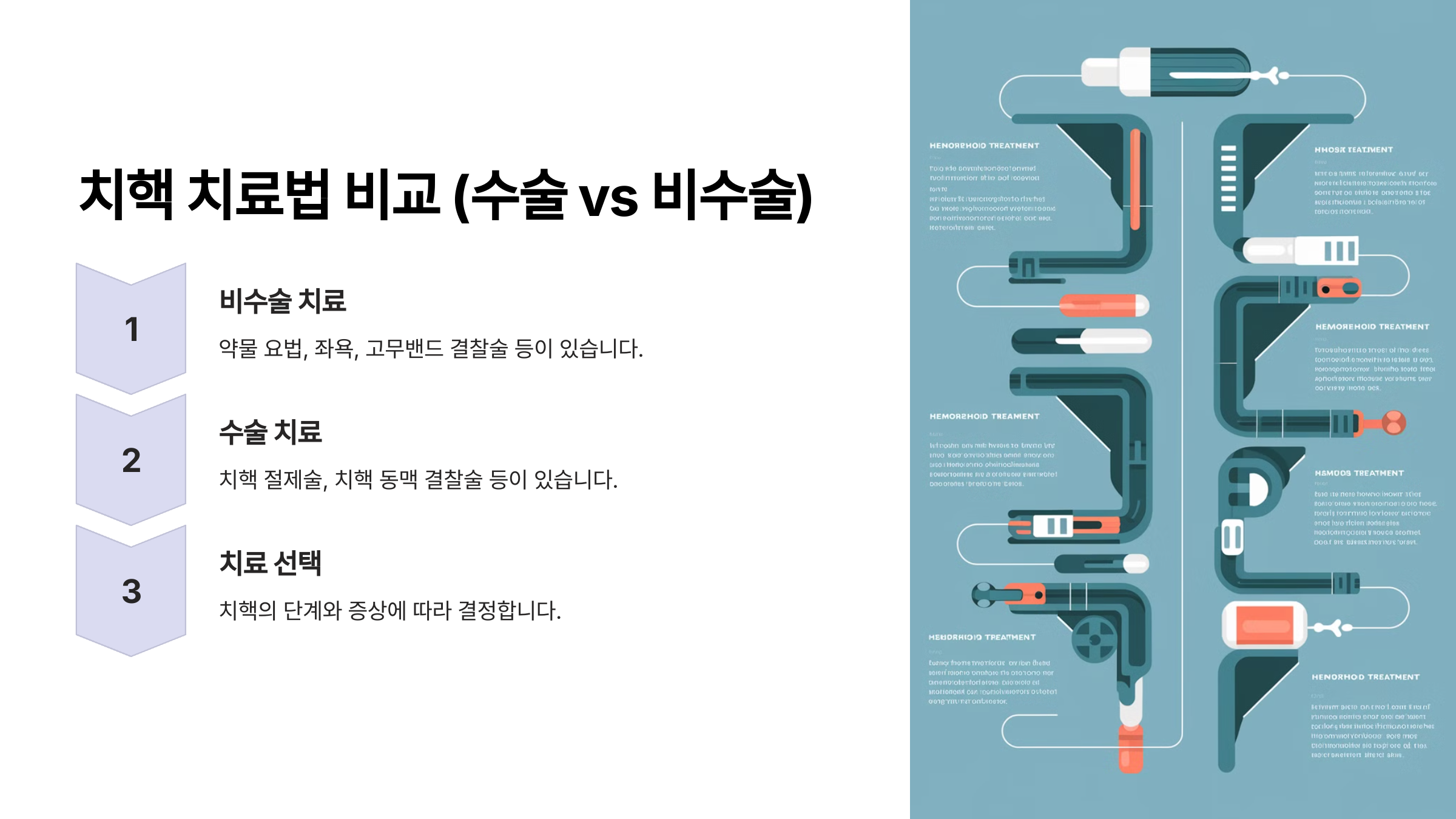 🔽 이제 치핵 치료법 비교 (수술 vs 비수술)에 대해 알아볼게요!