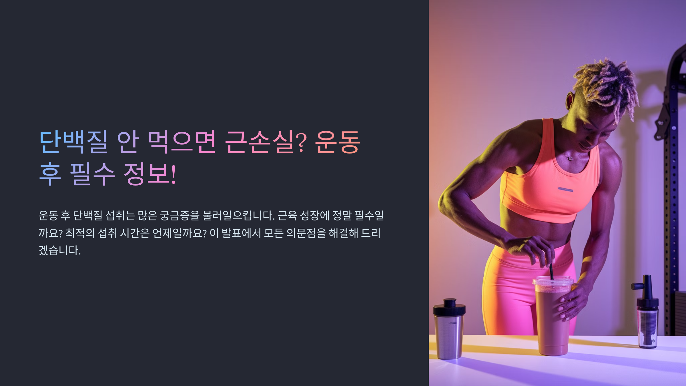 내가 생각했을 때 운동 후 단백질 섭취를 소홀히 하면 근육 회복이 느려지고, 심하면 근손실까지 올 수도 있어요. 그러니 단백질 섭취를 꼭 챙기는 게 중요해요! 💥