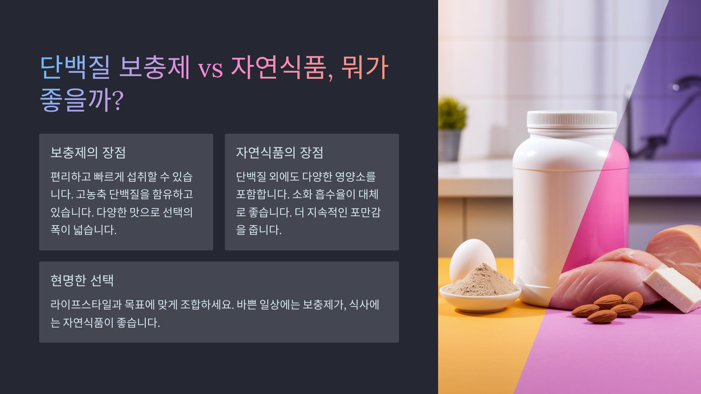 ⚖️ 단백질 보충제 vs 자연식품 비교