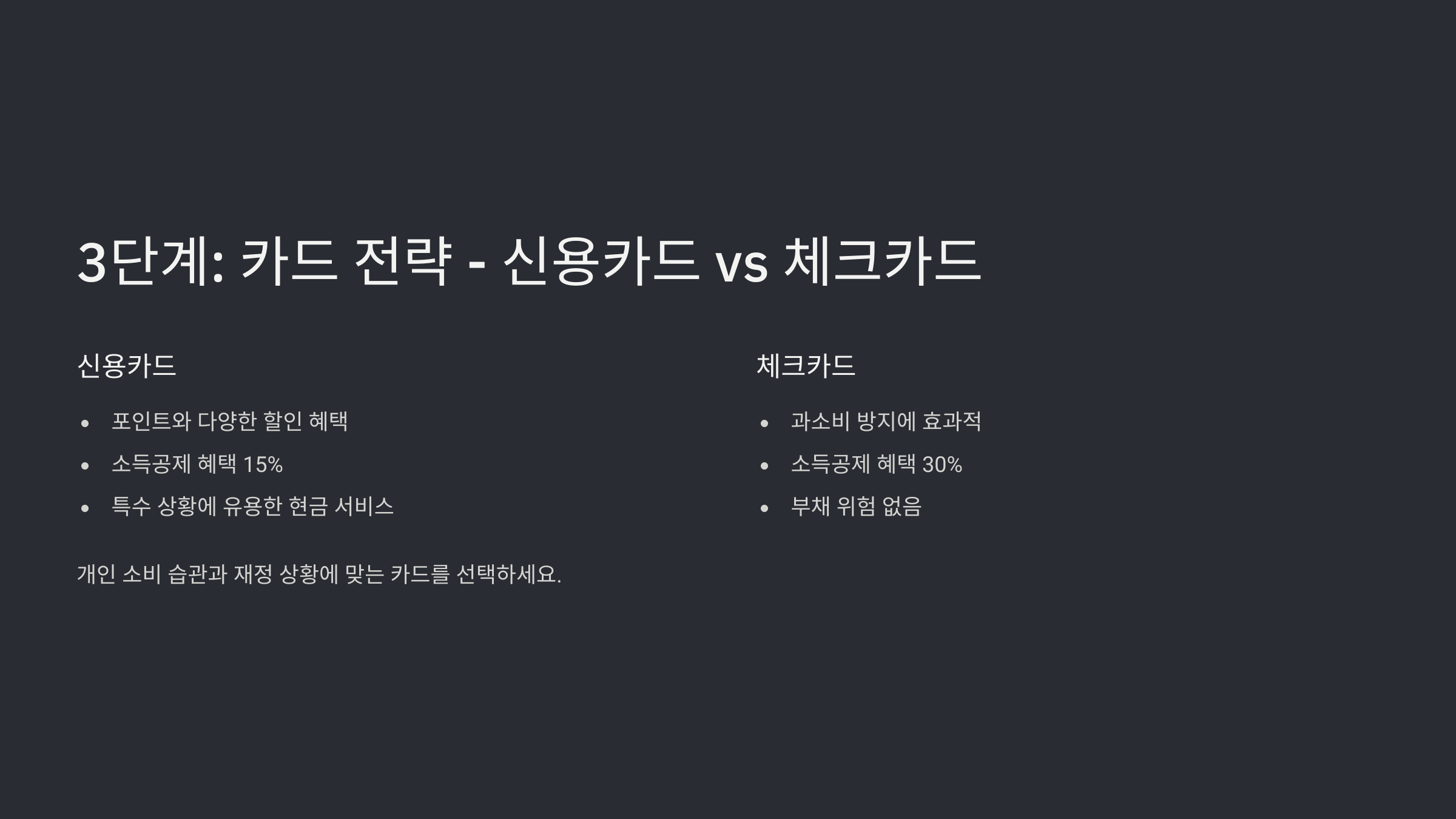 | 추천 대상 | 혜택을 극대화하고 싶은 사람 | 소비 습관을 잡고 싶은 사람 |