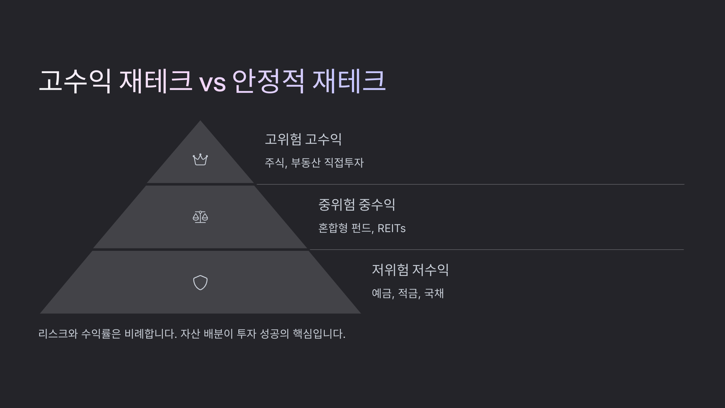 다음 섹션에서는 "고수익 재테크 vs 안정적 재테크"에 대해 알아볼게요! 📈