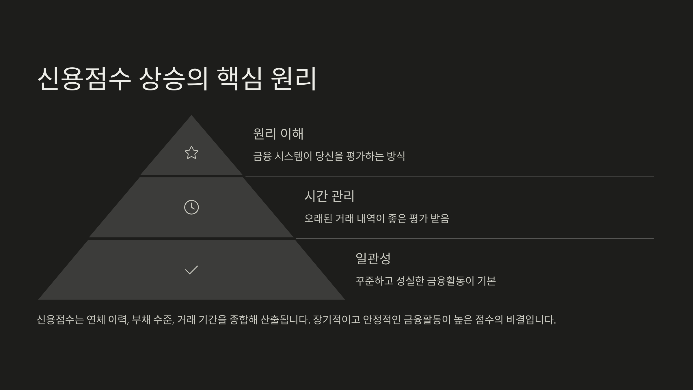 지금부터 신용점수를 올리는 핵심 원리를 자세히 알아볼게요! 📈