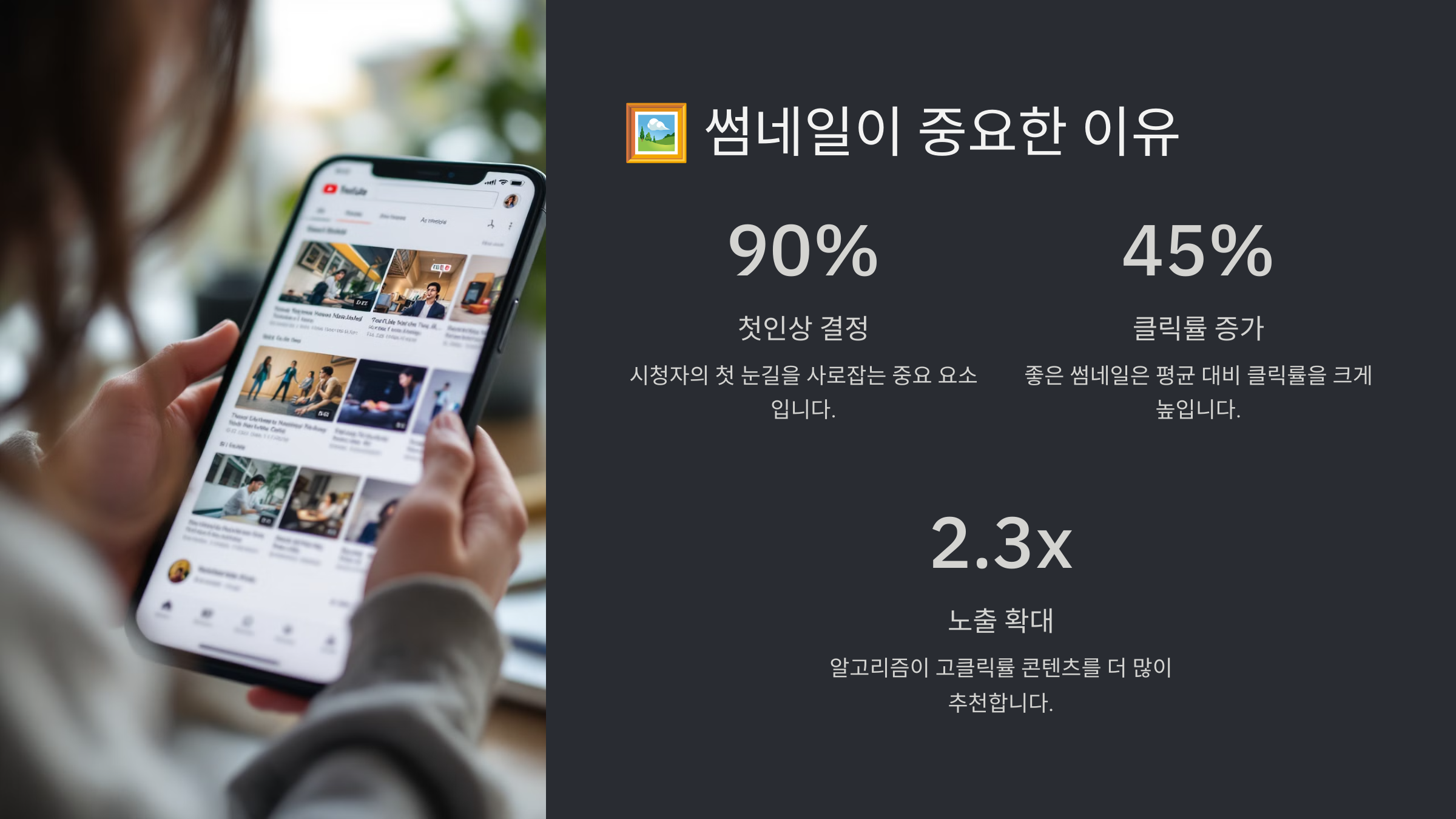 유튜브에서 성공적인 영상을 만들려면 콘텐츠 자체도 중요하지만, 첫인상을 결정하는 "썸네일"이 가장 큰 역할을 해요. 아무리 좋은 영상이라도 클릭하지 않으면 아무 의미가 없으니까요! 📊