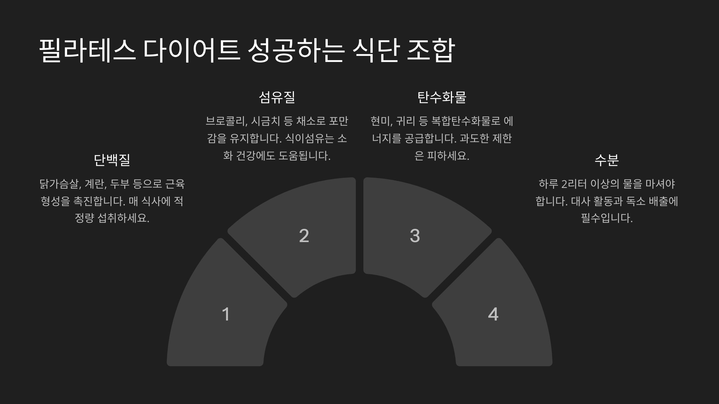 필라테스는 근육을 활성화하고 기초대사량을 높여 체지방 감량을 돕는 운동이에요. 따라서 단백질을 충분히 섭취해 근육을 유지하고, 건강한 탄수화물과 지방을 적절히 섭취하는 것이 중요해요. 🥗