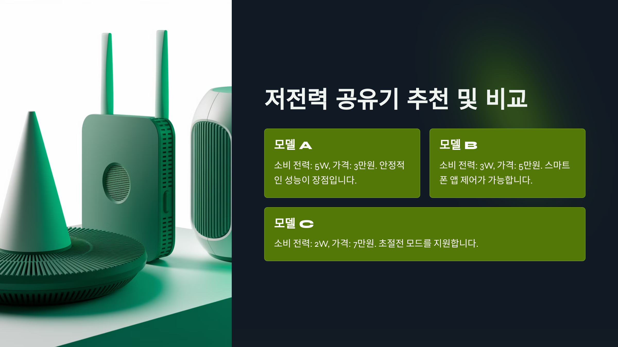 | 저전력 절전형 공유기 | 3~5W | 약 900~1,500원 |