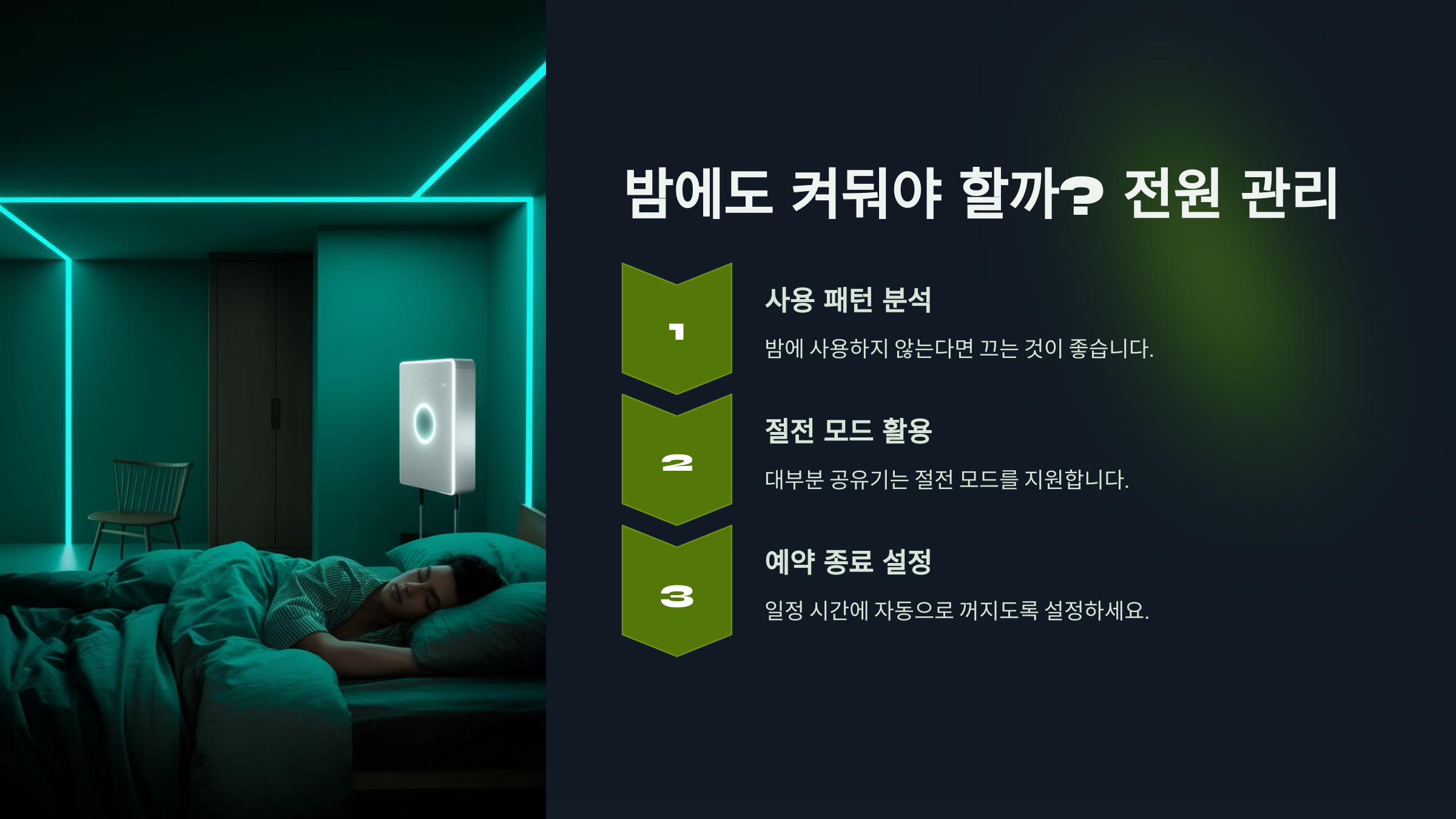 | 스마트 플러그 사용 | 일정 시간에 자동으로 전원 차단 |