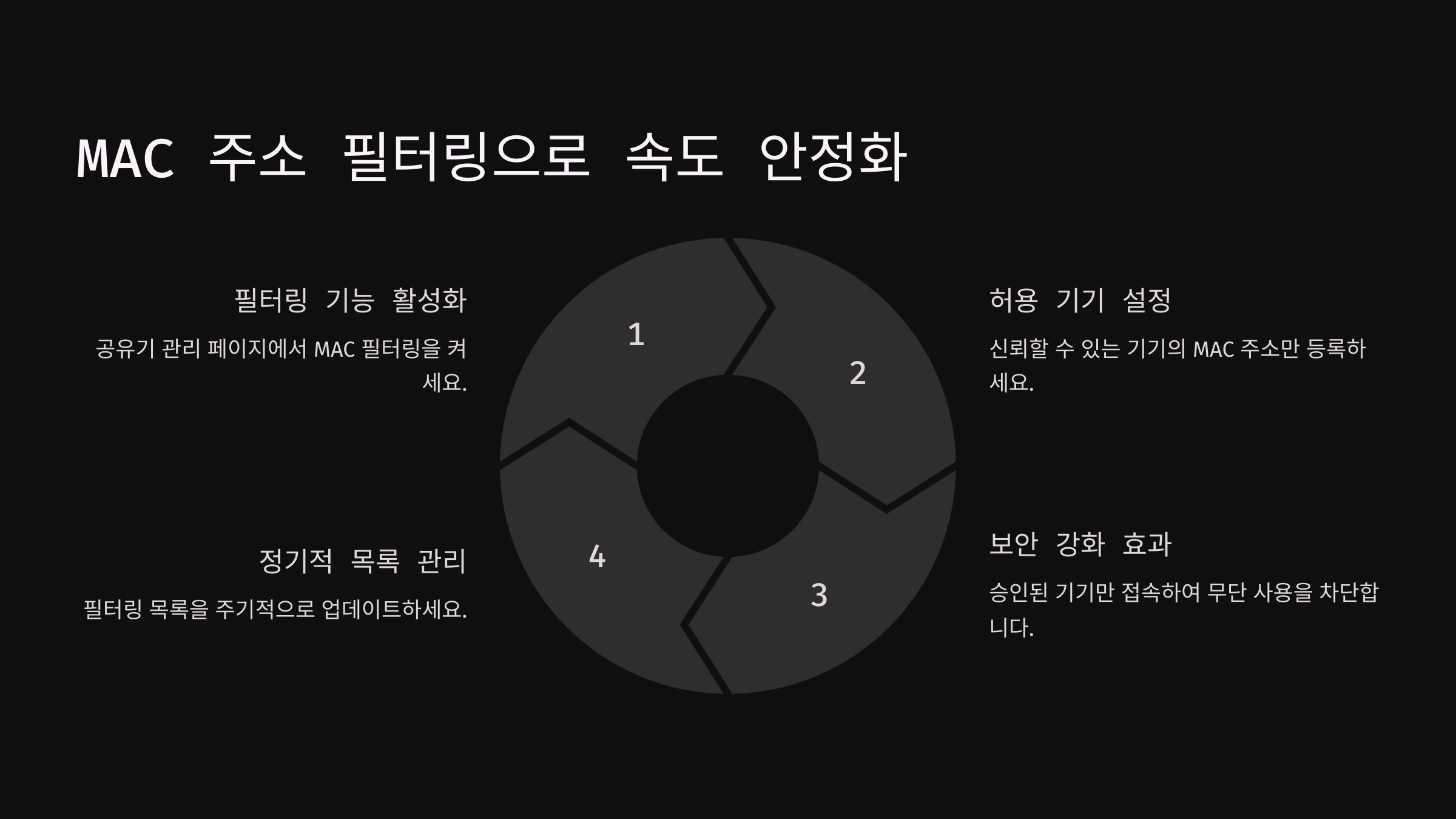 📡 이제 MAC 주소 필터링을 이용해 속도를 더욱 안정적으로 유지하는 방법을 알아볼까요? 🔐✨