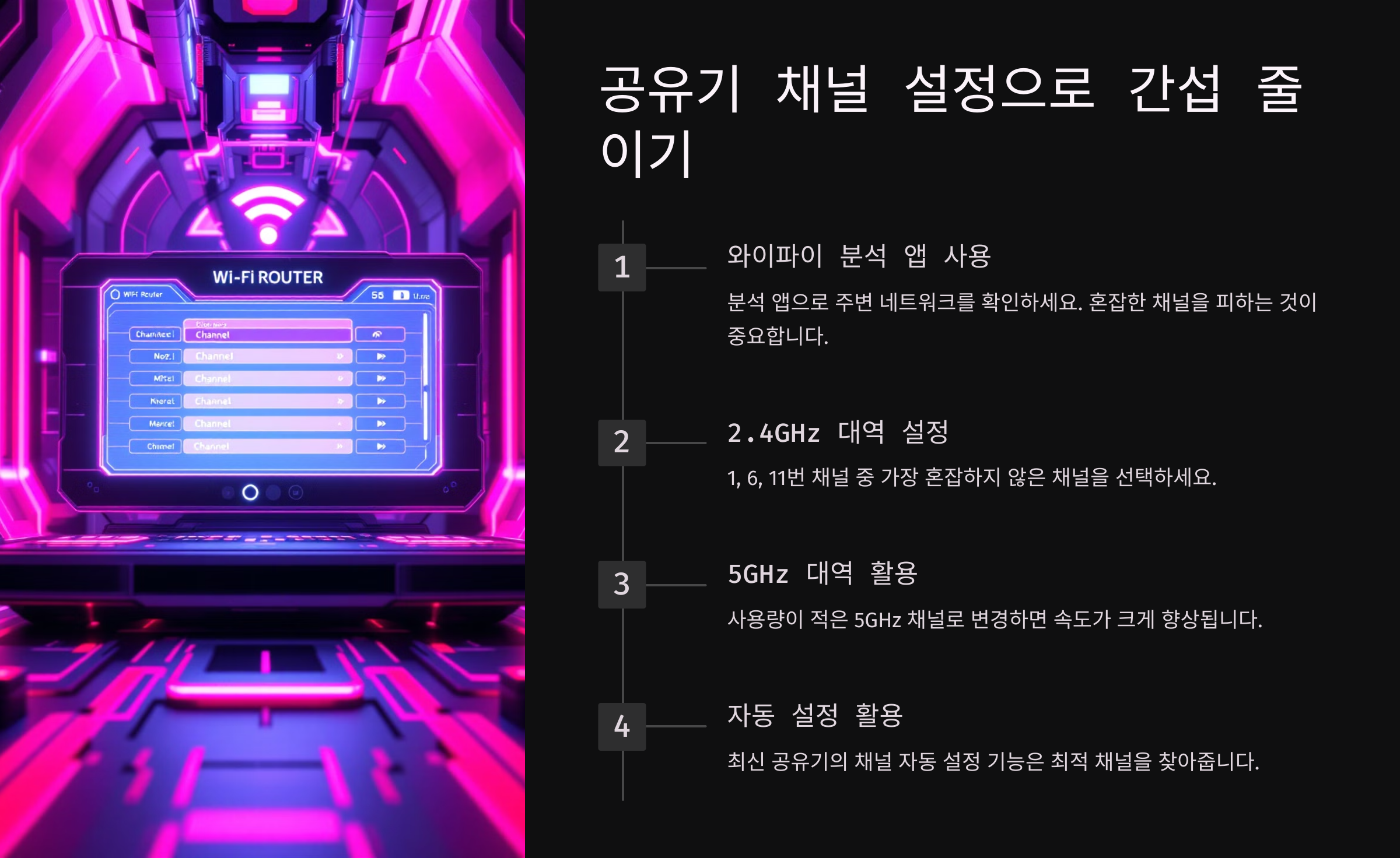 내가 생각했을 때, 이 설정 하나만 바꿔도 체감 속도가 달라지는 경우가 많아요! 인터넷 끊김이 심하다면 먼저 채널부터 확인해 보세요. 🏡