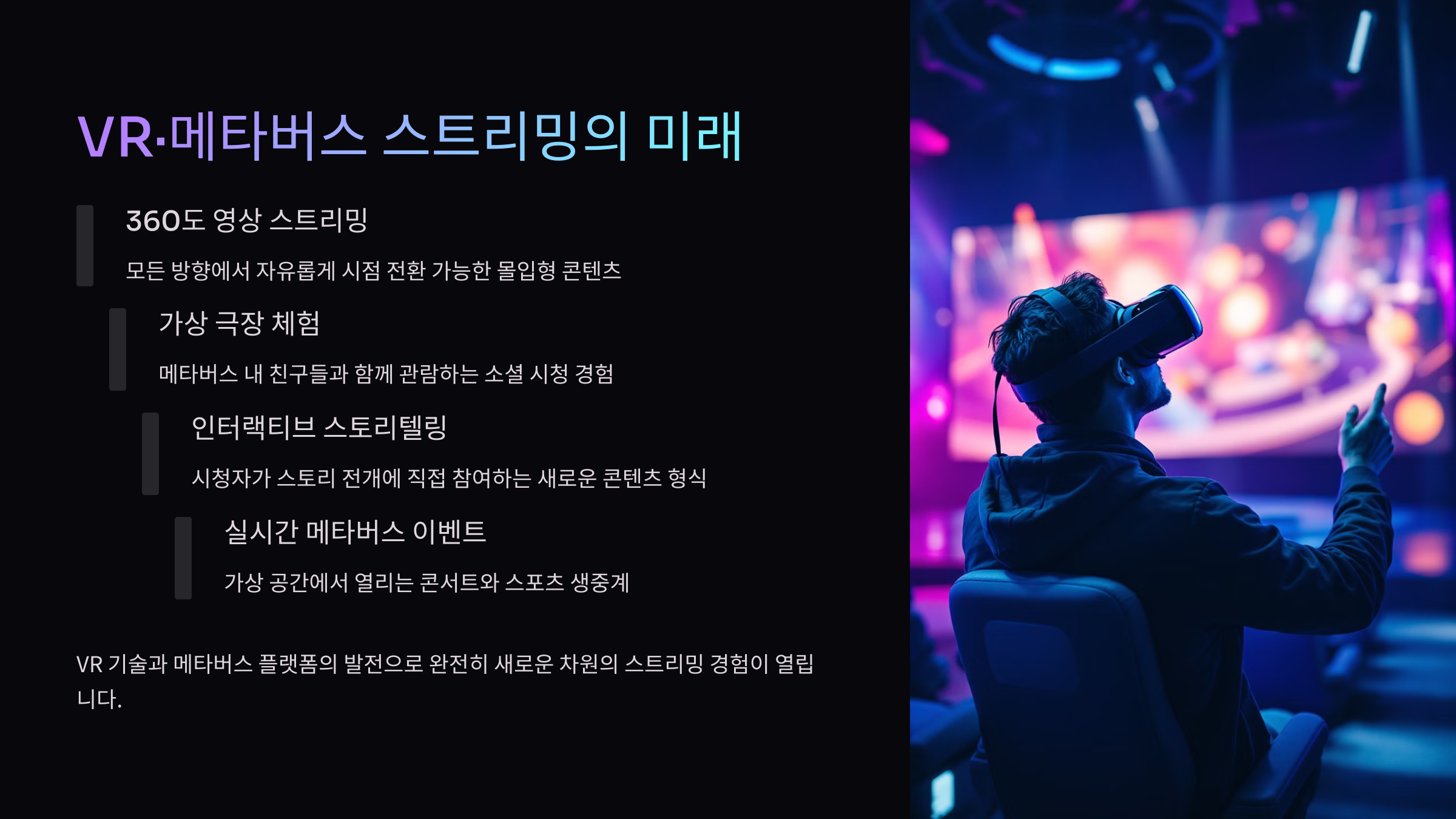 다음 섹션에서는 VR·메타버스 기반 스트리밍의 가능성을 살펴볼게요!
