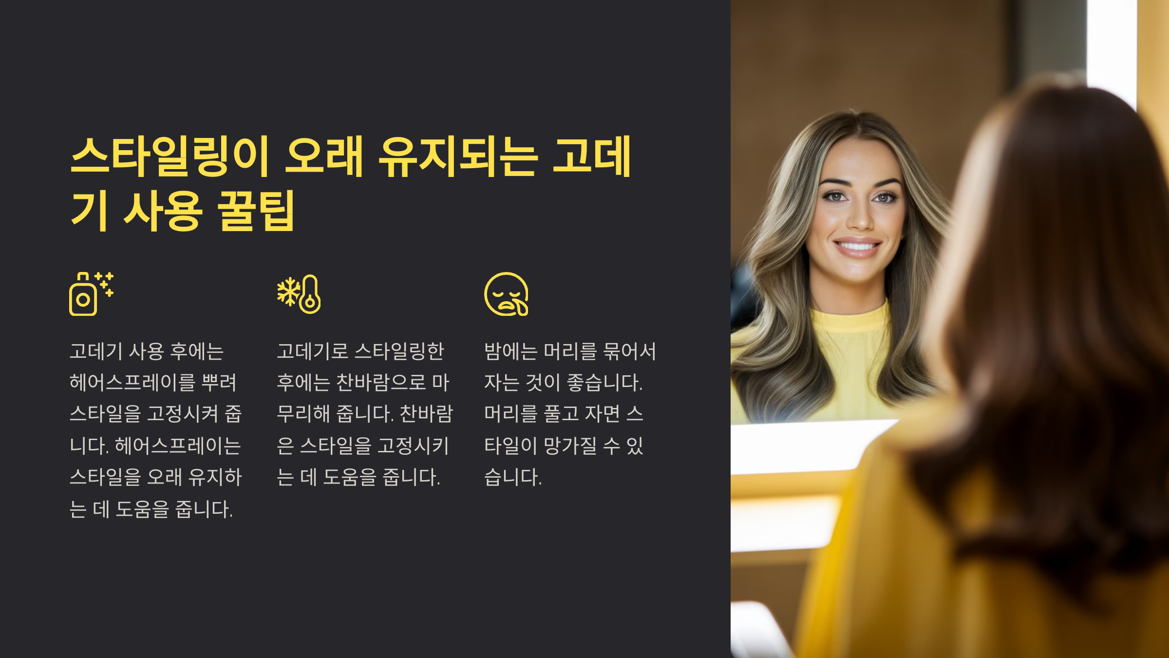 이제 스타일별로 어떤 고데기가 좋은지 알았죠? 그런데 스타일링을 오래 유지하려면 또 다른 꿀팁이 필요해요! 💡