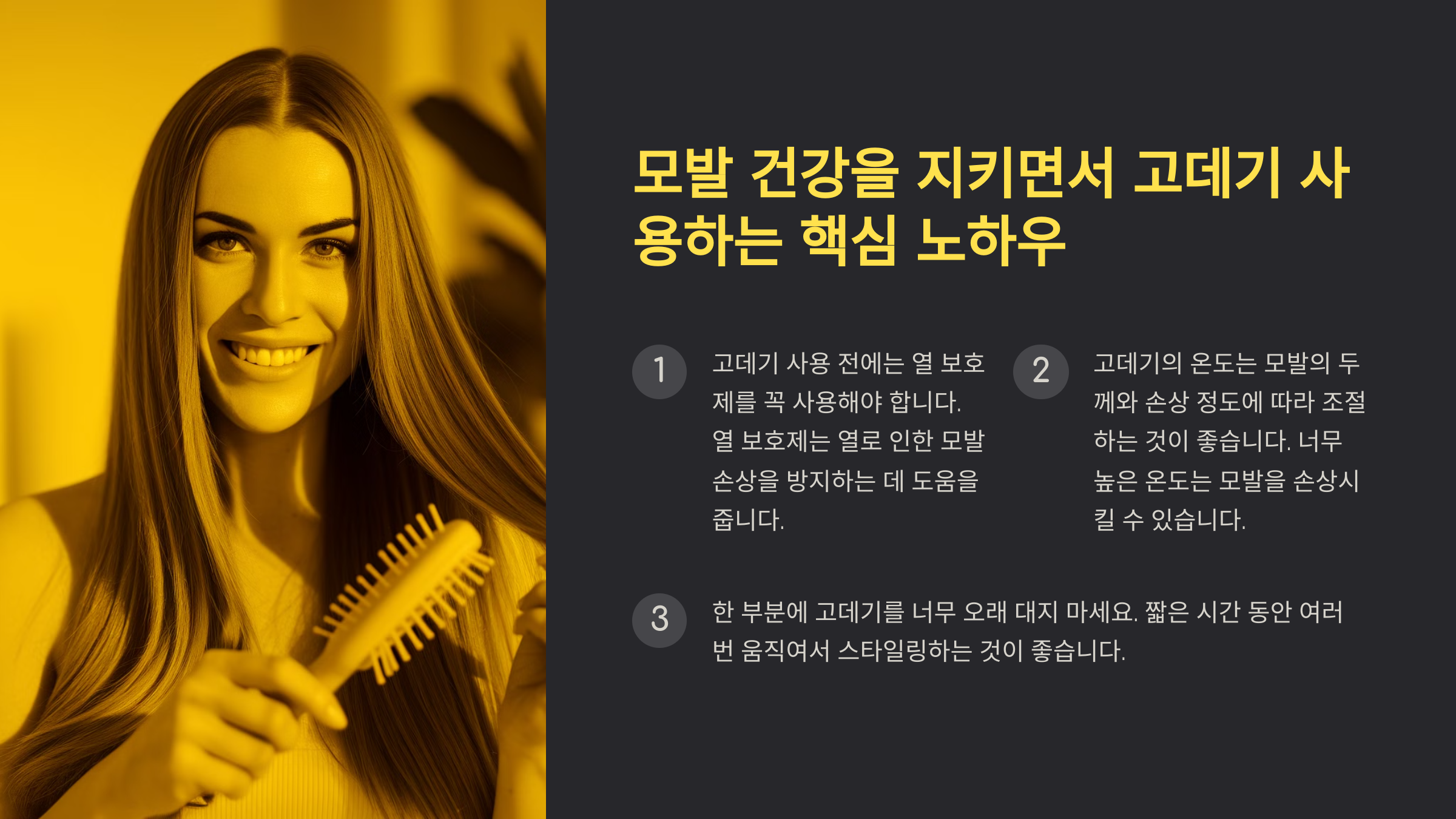 고데기를 자주 사용하면 머릿결이 상할까 봐 걱정되죠? 하지만 올바른 방법을 알면 손상을 최소화하면서 스타일링할 수 있어요! ✨