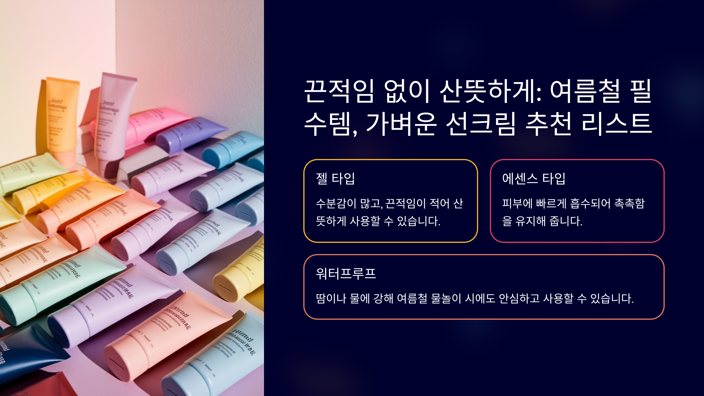선크림을 바를 때 가장 큰 고민 중 하나가 바로 "끈적임"이에요. 특히 여름철에는 무거운 제형이 불편하게 느껴질 수 있죠. 그렇다면 가볍고 산뜻한 선크림은 어떤 제품일까요? ☀️