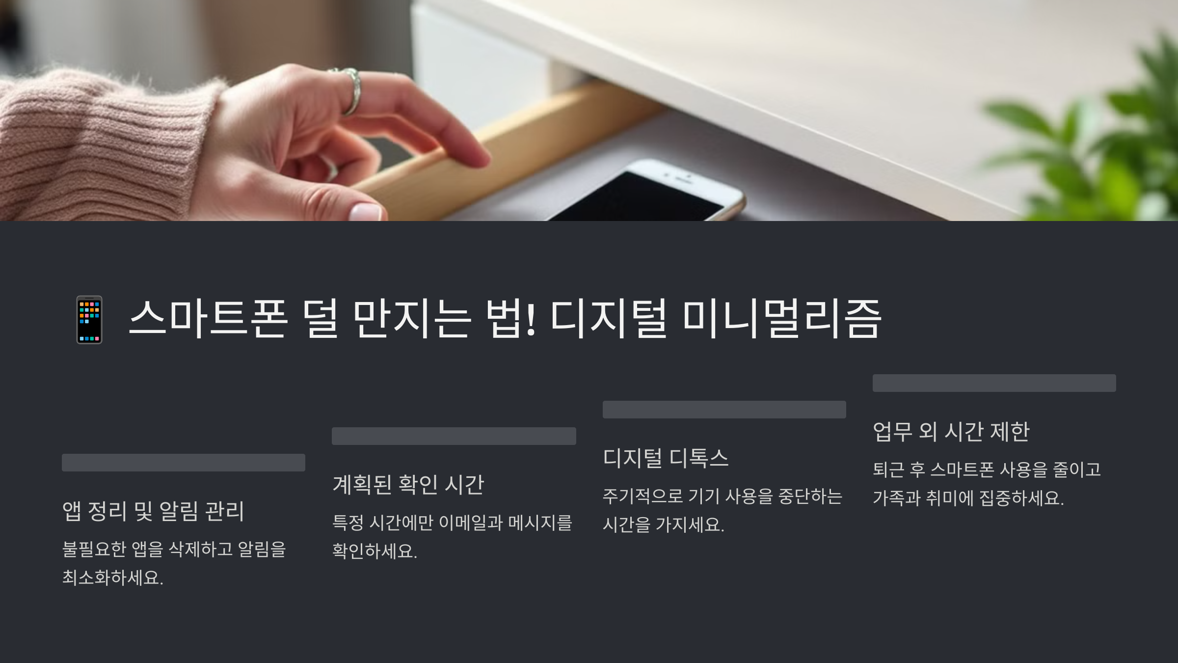 스마트폰 사용을 줄이면 업무 집중력은 물론이고 삶의 질까지 높아질 거예요! 💡