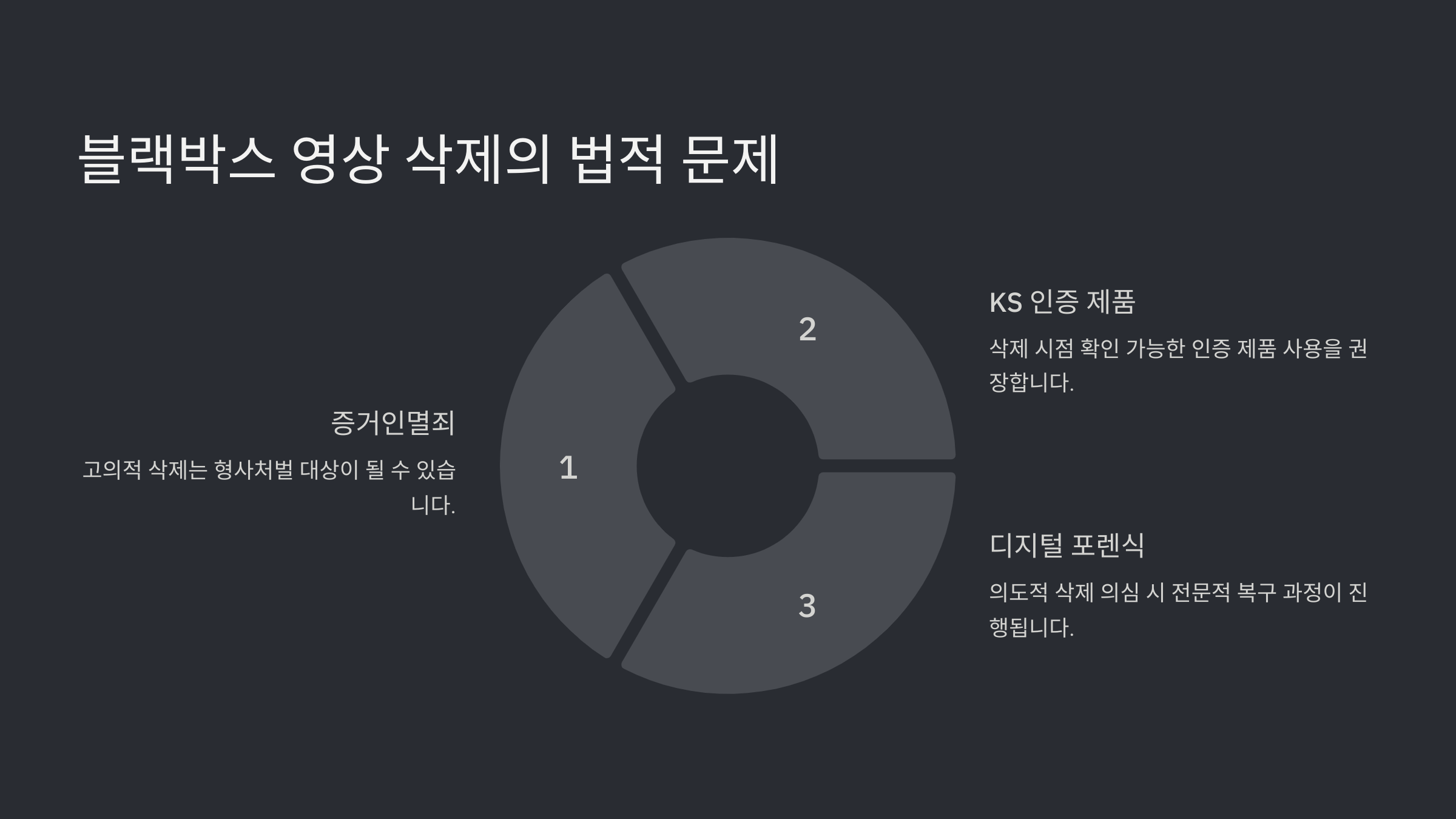 먼저, 고의적으로 영상을 삭제해서 사고 증거를 없애려 했다면 '증거 인멸'로 처벌받을 수 있어요. 특히 경찰 조사가 진행 중이거나 법원에서 증거 제출을 요구한 상태에서 영상을 지우면 법적 책임이 커져요.