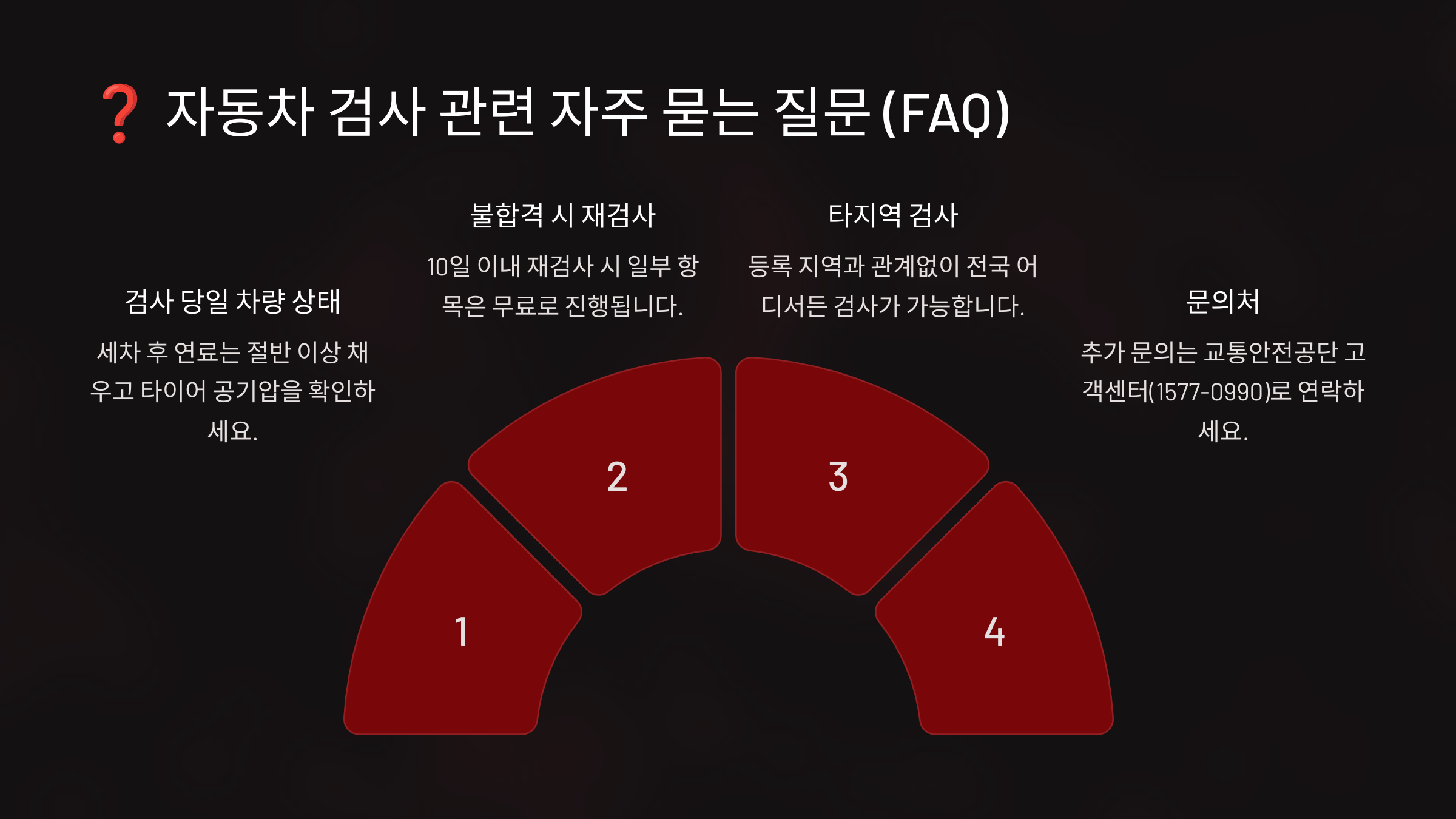 자동차 검사와 관련된 자주 묻는 질문(FAQ)도 확인해 보세요! 👇