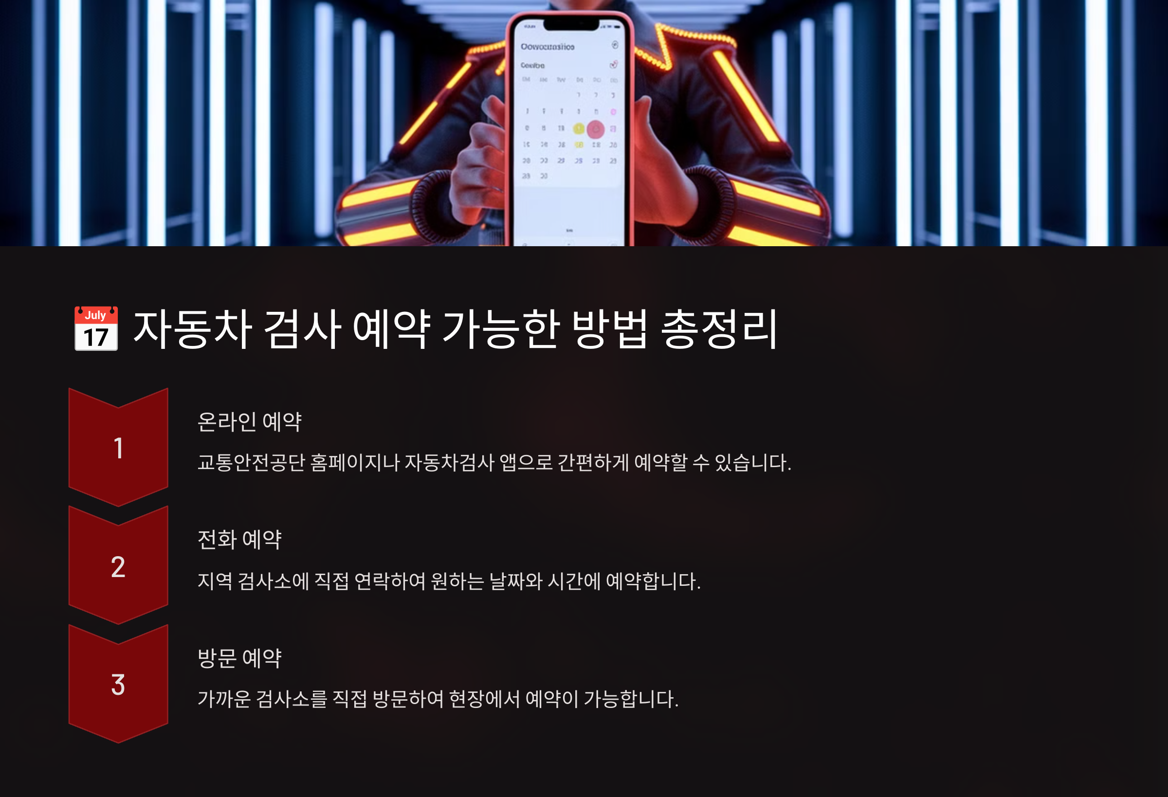 자동차 검사는 기한 내에 꼭 받아야 해요! 그렇다면 어떻게 예약하면 가장 편할까요? 다양한 방법을 알아볼게요. 📌