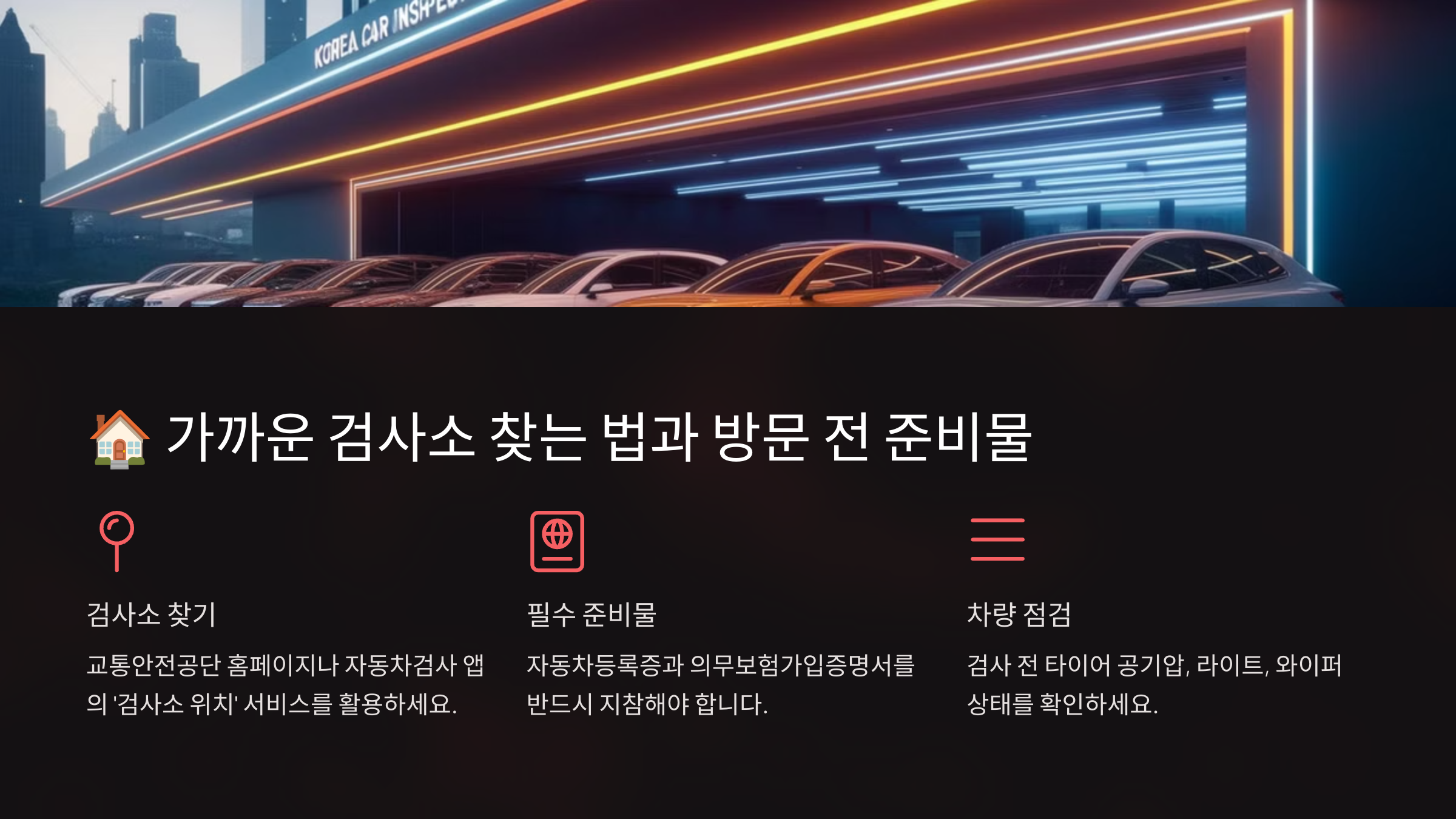 ✔ 방문 전 준비물: 자동차 등록증, 검사 비용, 신분증을 꼭 챙겨 가세요! 🔑
