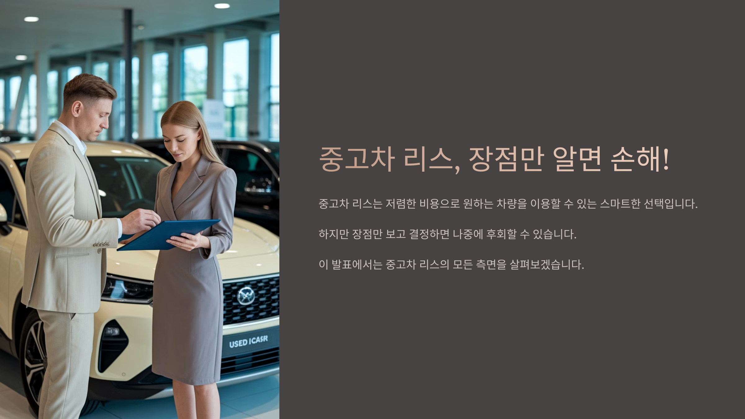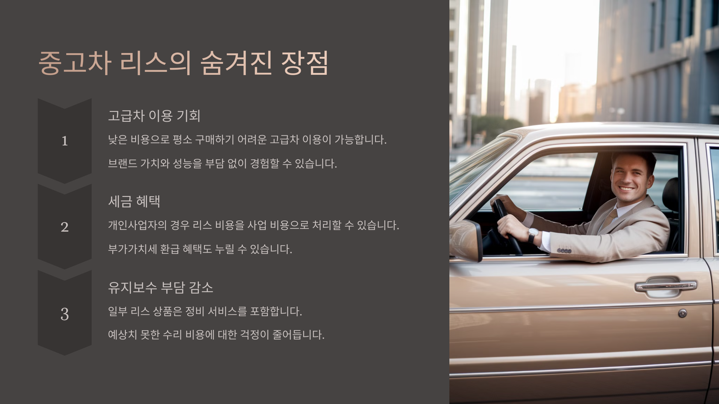 중고차 리스는 '싸구려 옵션'이 아니라, 실속파를 위한 똑똑한 선택일 수도 있어요! 🤩