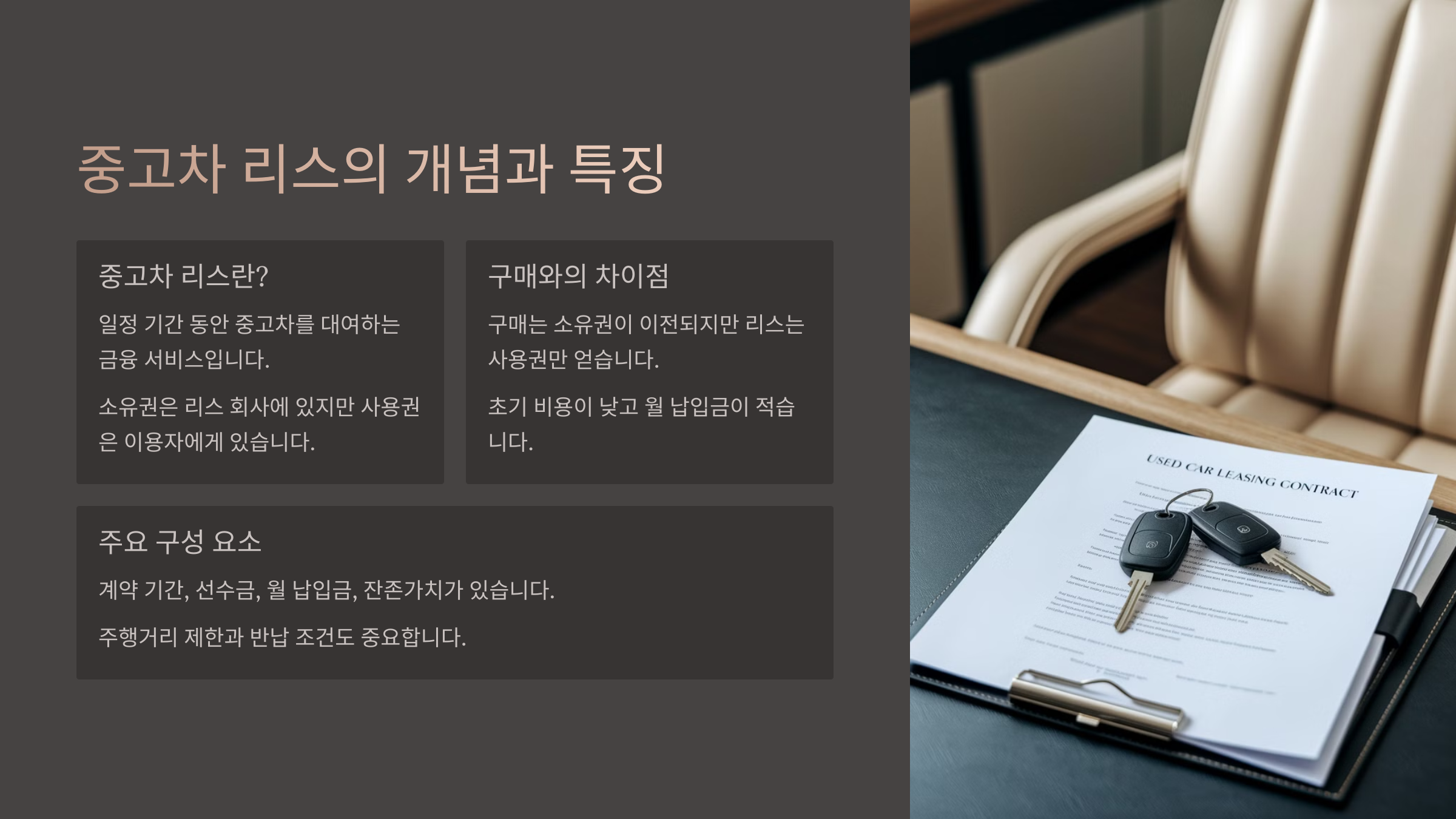 중고차 리스, 들어는 봤지만 정확한 개념과 장단점을 모른다면 손해 볼 수 있어요! 🚗💨