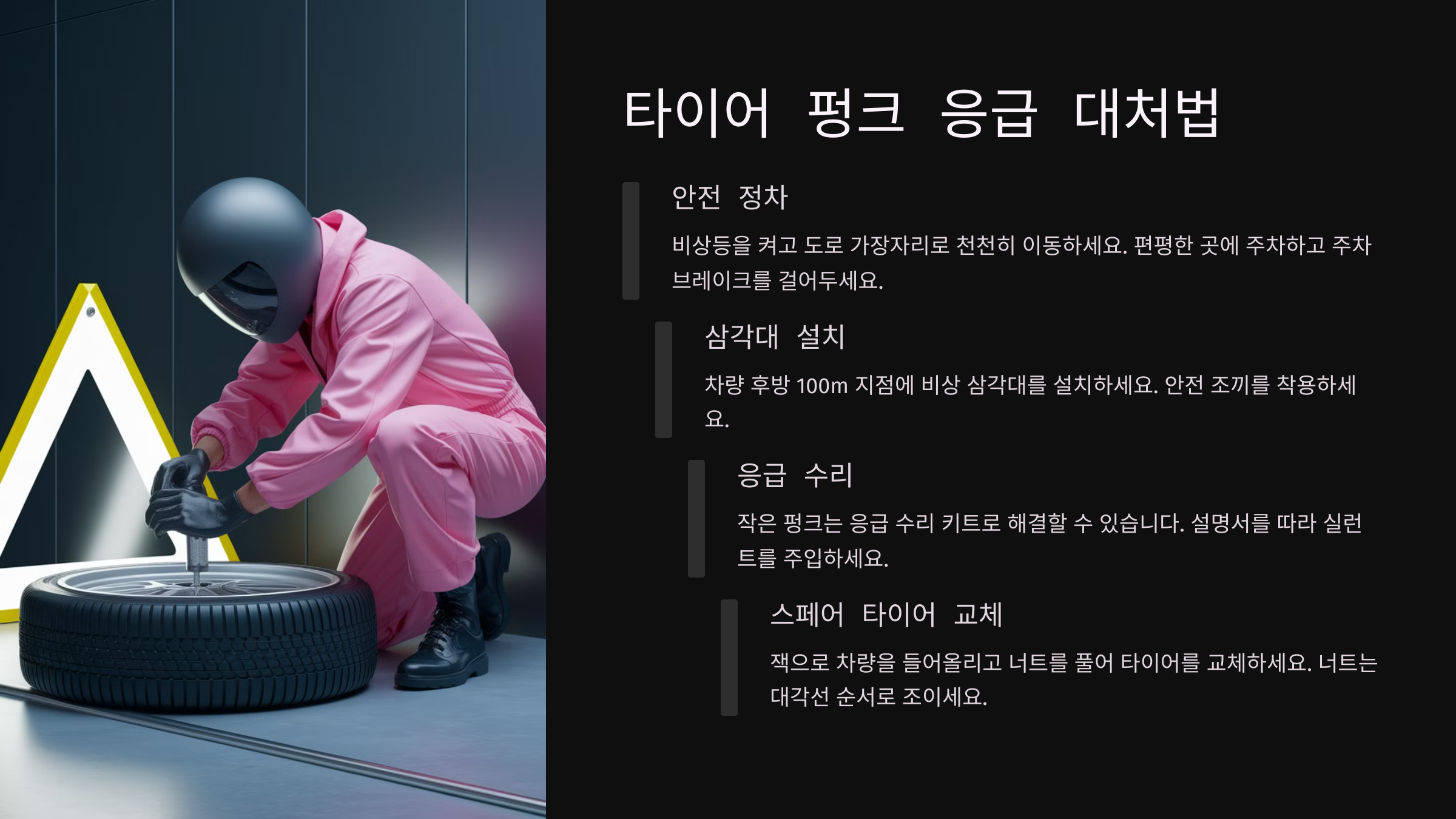 💥 운전 중 갑자기 타이어가 펑크 나면 당황할 수밖에 없어요. 하지만 당황하지 않고 올바르게 대처하면 안전하게 해결할 수 있어요!
