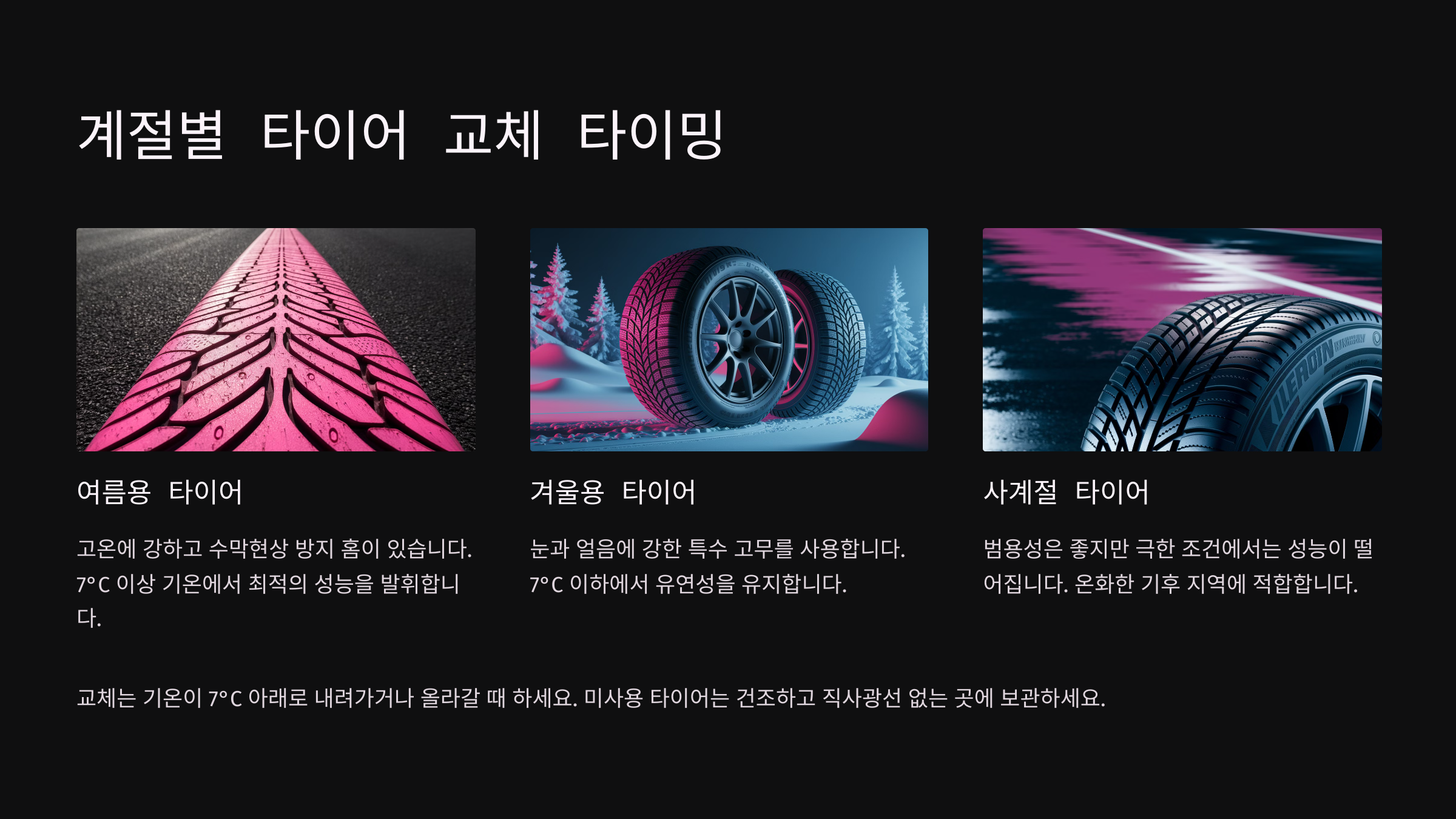 | 계절 | 추천 타이어 | 특징 |