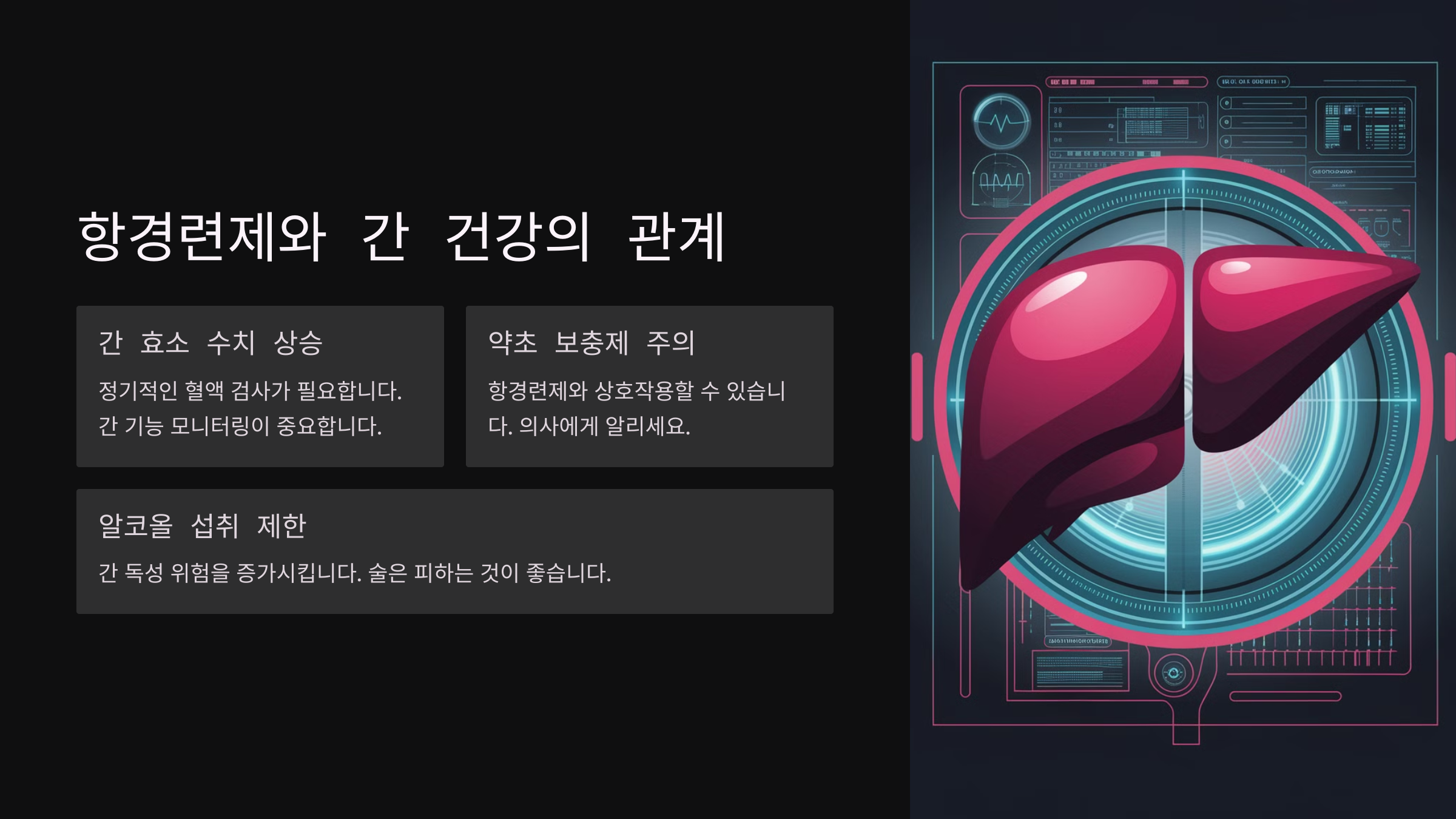 항경련제는 간에서 대사되기 때문에 장기 복용 시 간 기능에 영향을 줄 수 있어요. 특히 발프로산, 카바마제핀, 페니토인 등의 약물은 간 효소 수치를 증가시키거나 간 손상을 유발할 위험이 있어요. 🏥