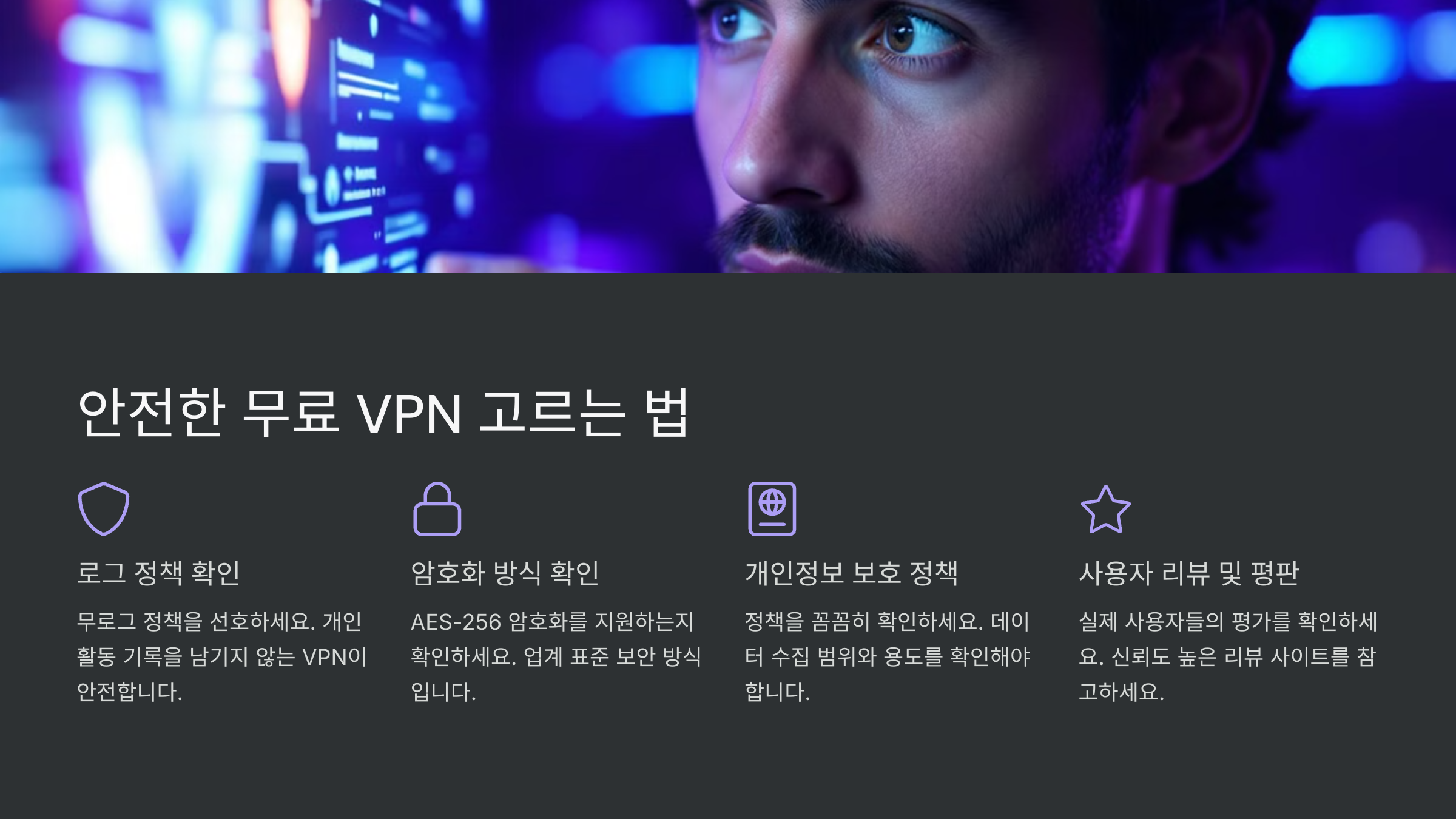 무료 VPN을 사용할 때 가장 중요한 것은 보안이에요. 아무리 무료라도 개인정보가 유출되거나, 해킹에 취약하면 큰 문제가 되겠죠? 😨 그래서 신뢰할 수 있는 VPN을 고르는 몇 가지 핵심 기준을 알려드릴게요!