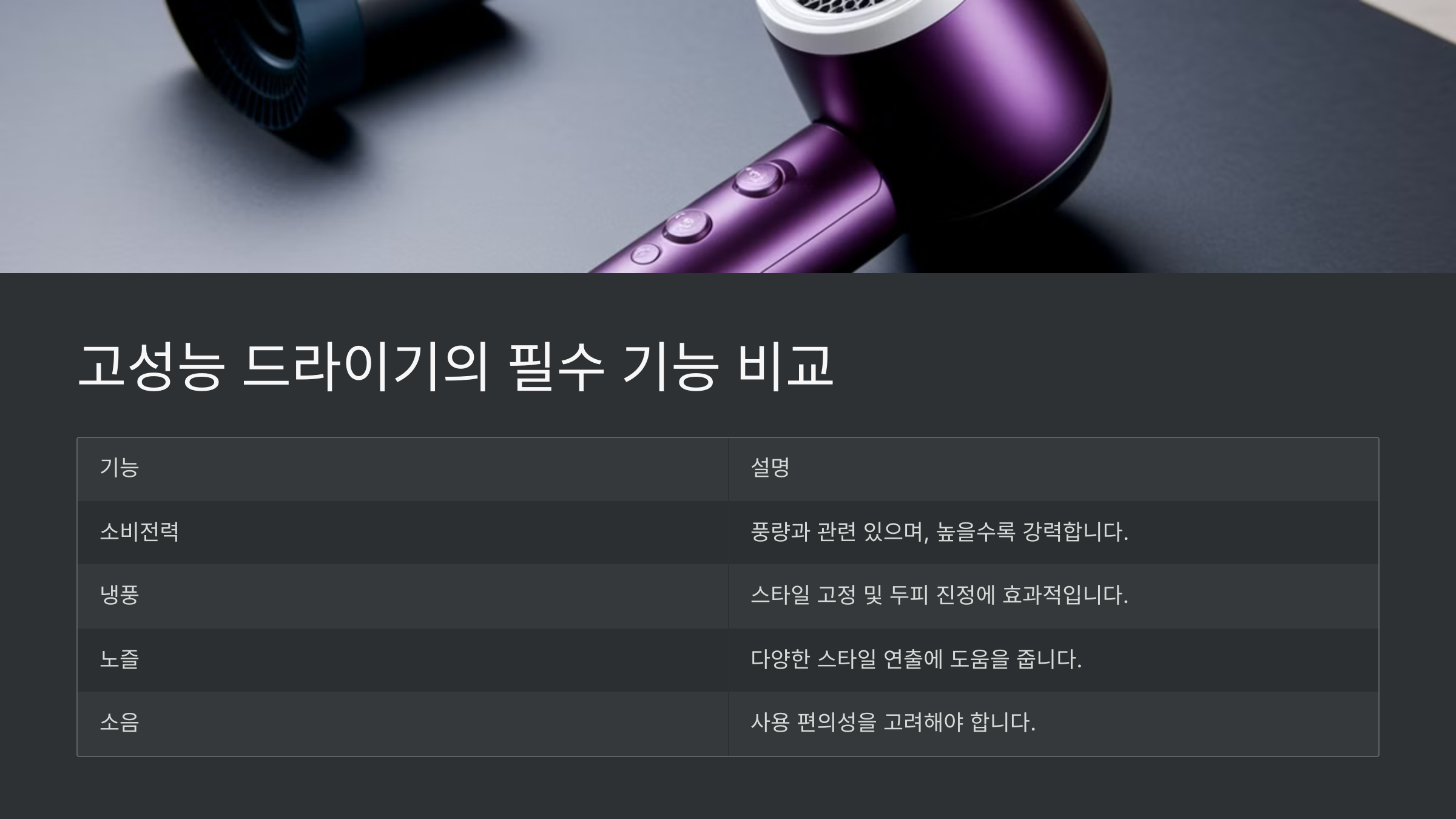 🔍 드라이기 기능 비교표