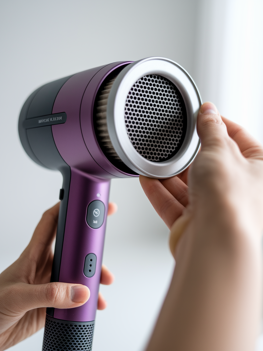 드라이기 뒷부분에 있는 필터는 먼지와 이물질이 쌓이는 곳이에요. 필터가 막히면 바람이 약해지고 모터가 과열될 수 있어요. 최소 한 달에 한 번은 필터를 분리해서 청소해 주세요. 🔧