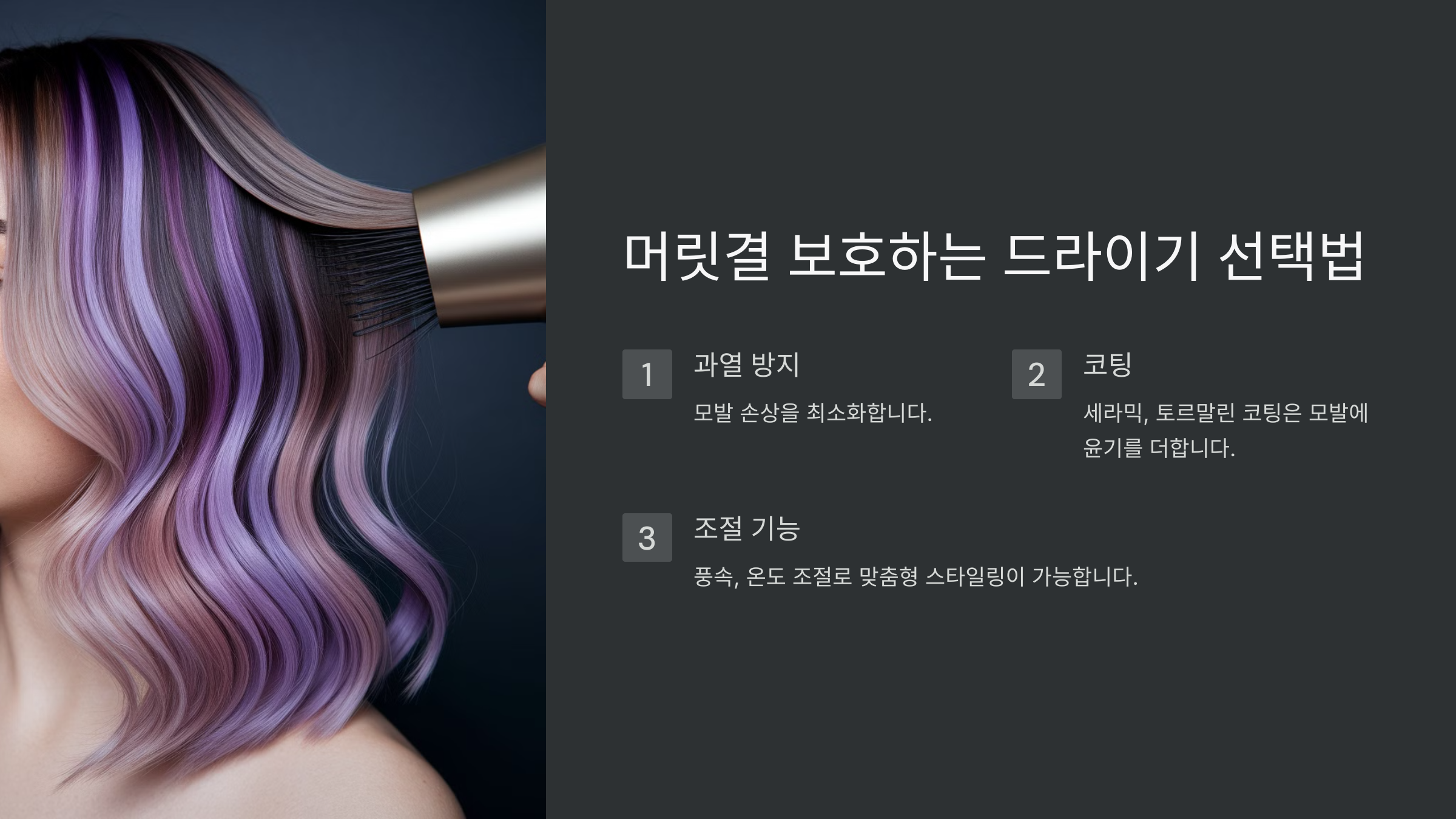 자신의 모발 타입에 맞는 드라이기를 선택하면 머릿결 건강을 더 오래 유지할 수 있어요! 😉