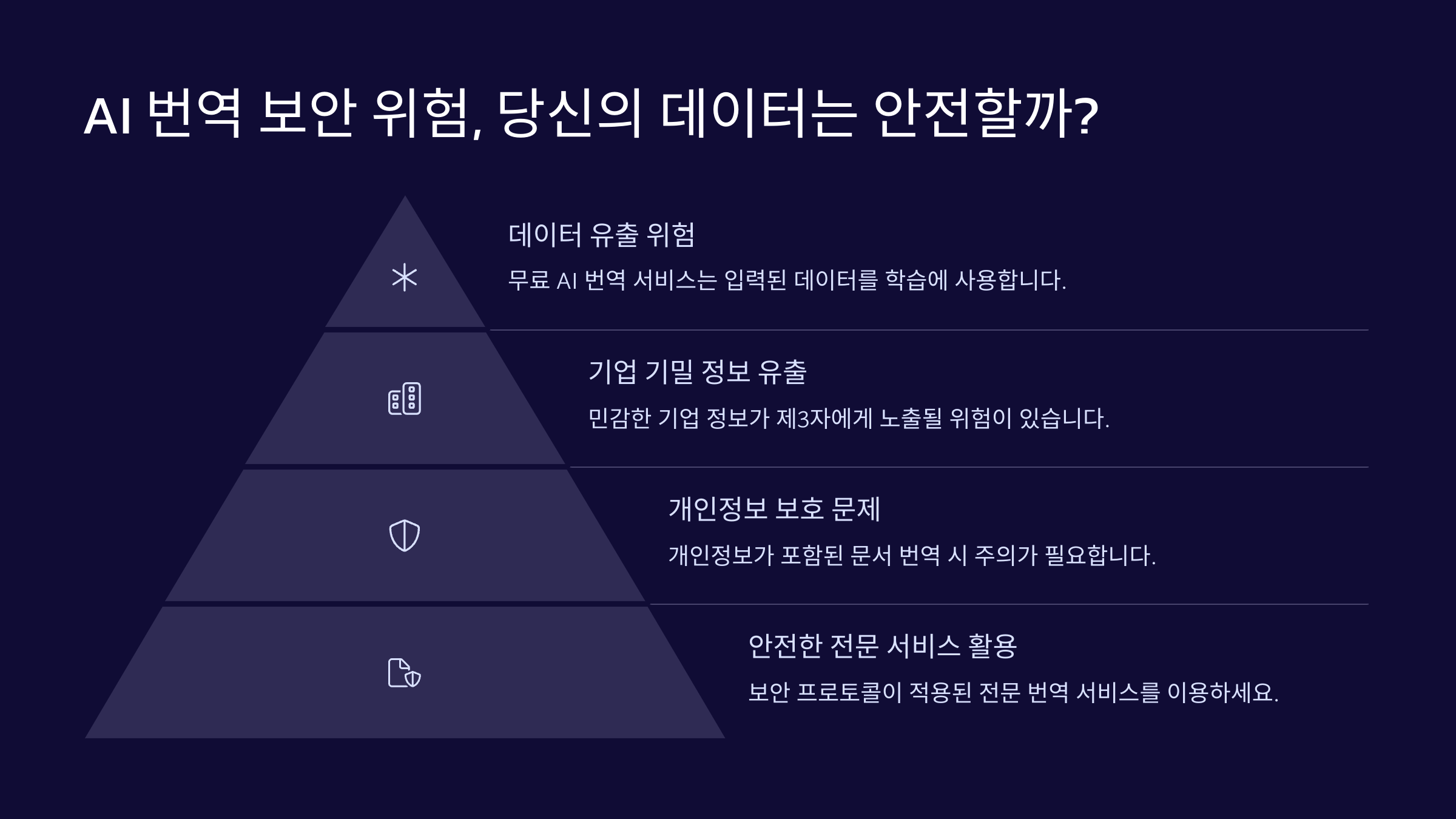 | 클라우드 저장 위험 | 기밀 문서는 AI 번역기 사용 금지, 로컬 번역 프로그램 활용 |