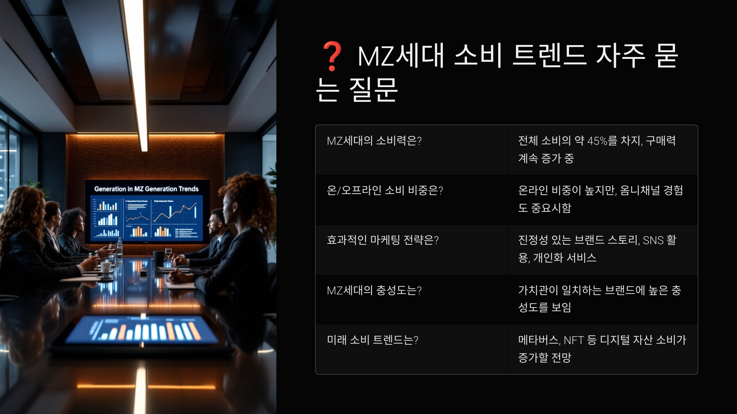 다음 섹션에서는 ❓ MZ세대 소비 트렌드 자주 묻는 질문 (FAQ) 에 대해 알아볼게요!