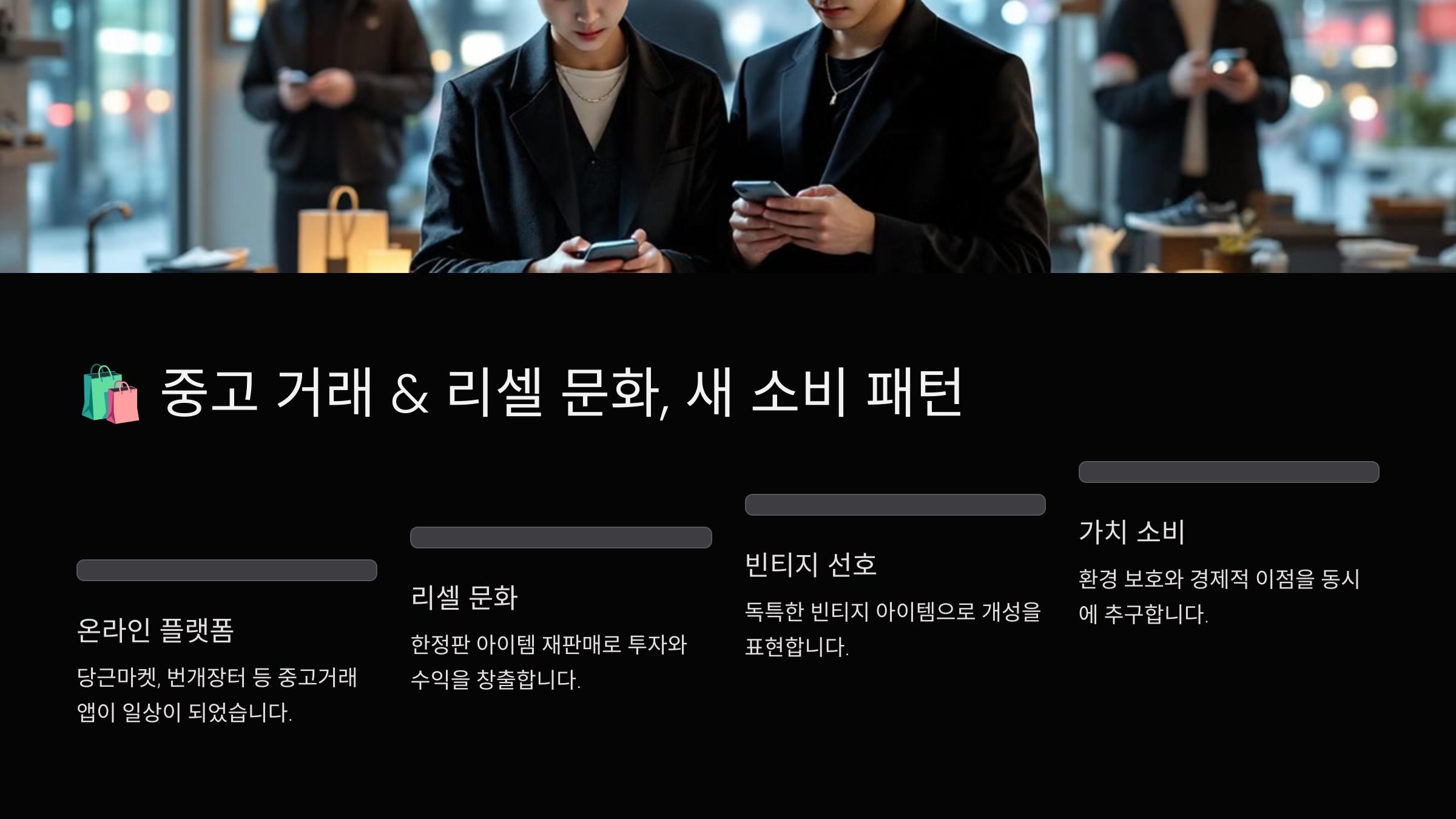 다음 섹션에서는 🛍️ 중고 거래 & 리셀 문화, 새 소비 패턴 에 대해 알아볼게요!