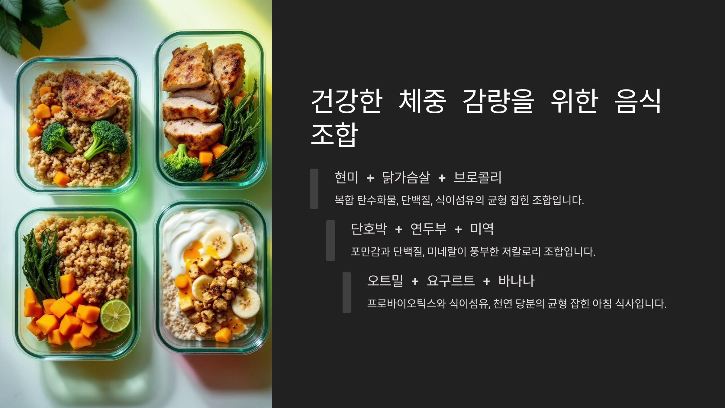 이제 다이어트할 때도 균형 잡힌 조합을 활용하면 건강하게 체중을 감량할 수 있어요! 💪