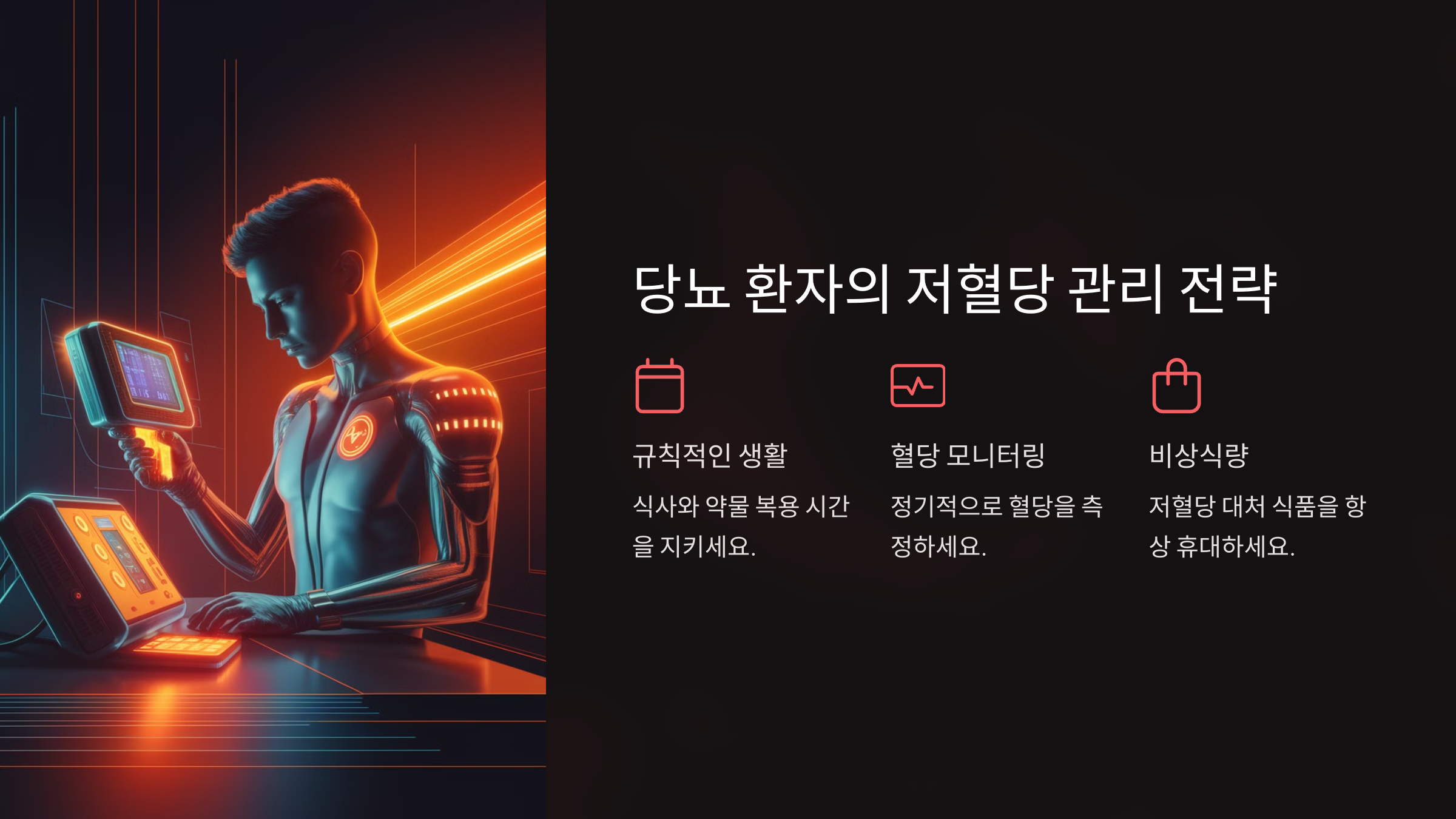 다음 섹션에서는 **당뇨 환자가 저혈당을 관리하는 방법**을 알려드릴게요! 🏥