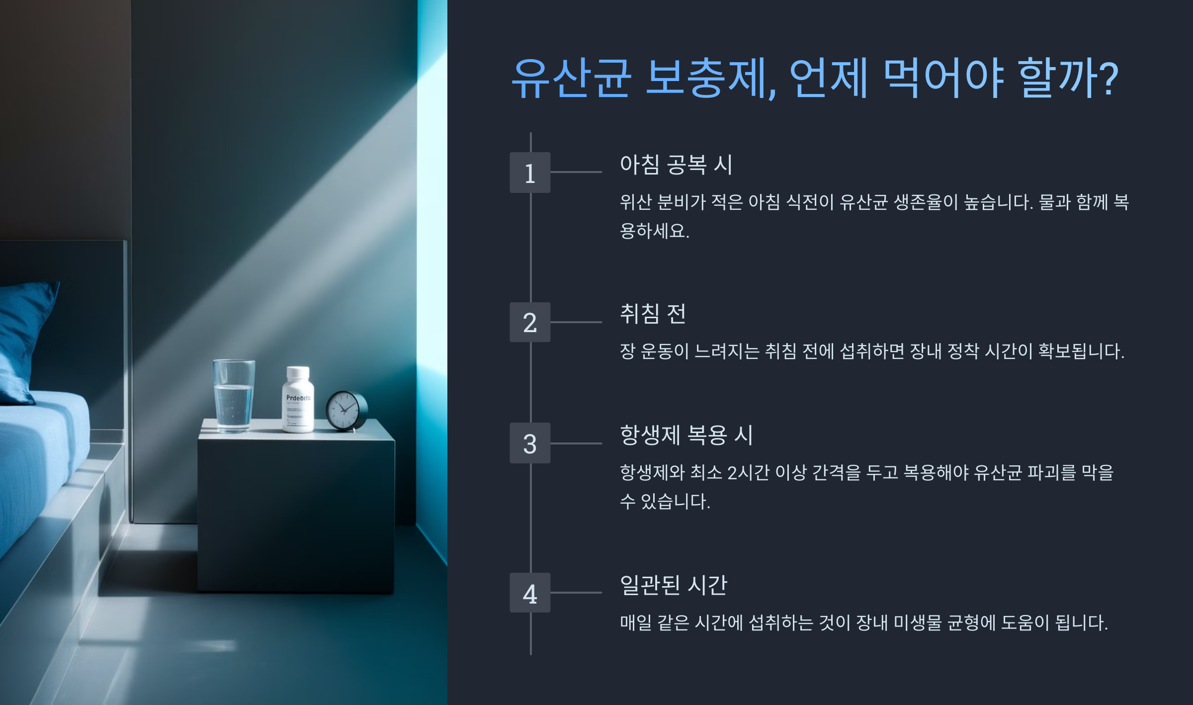 적절한 타이밍에 유산균을 섭취하면 효과를 극대화할 수 있어요! 💪