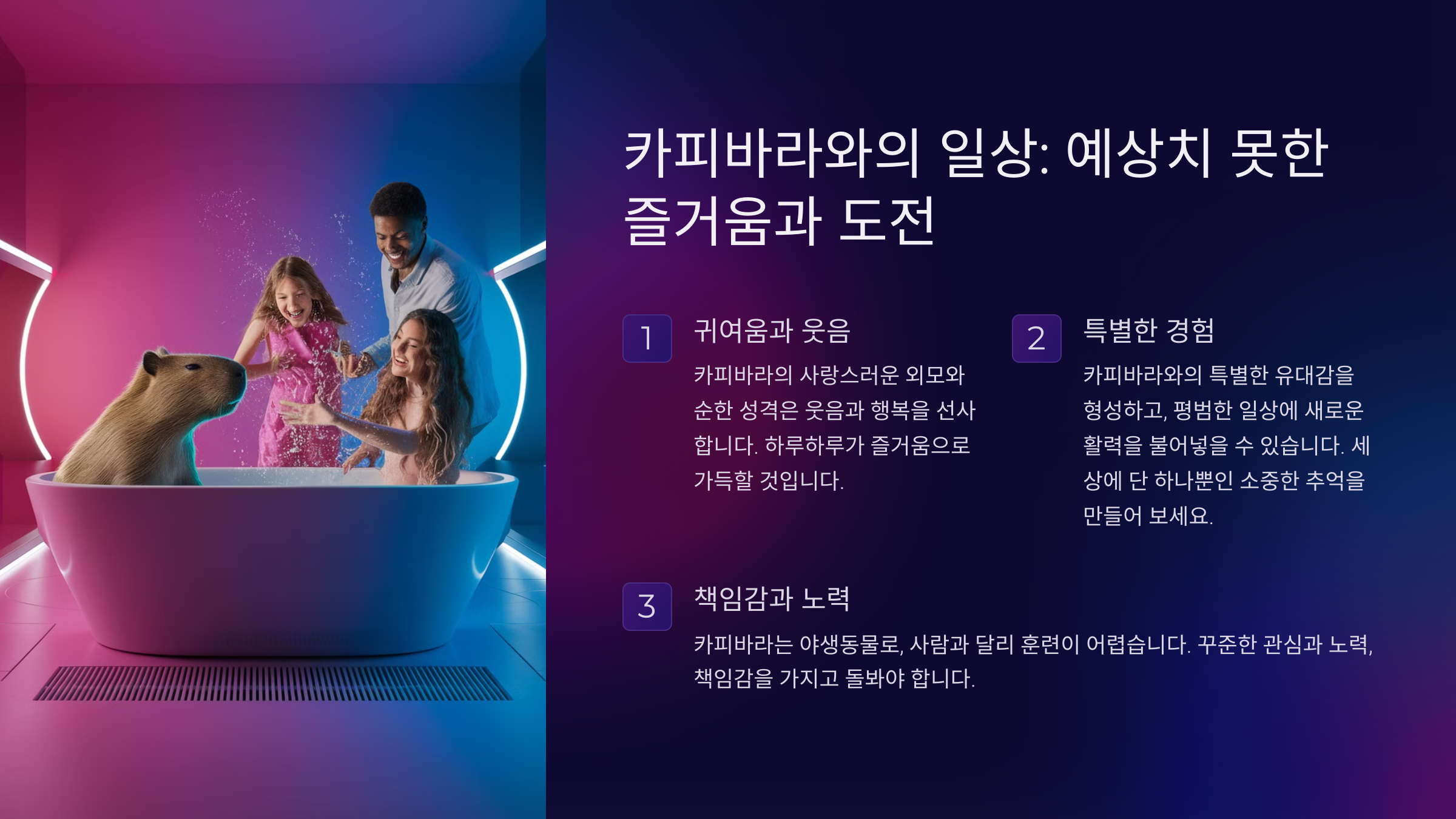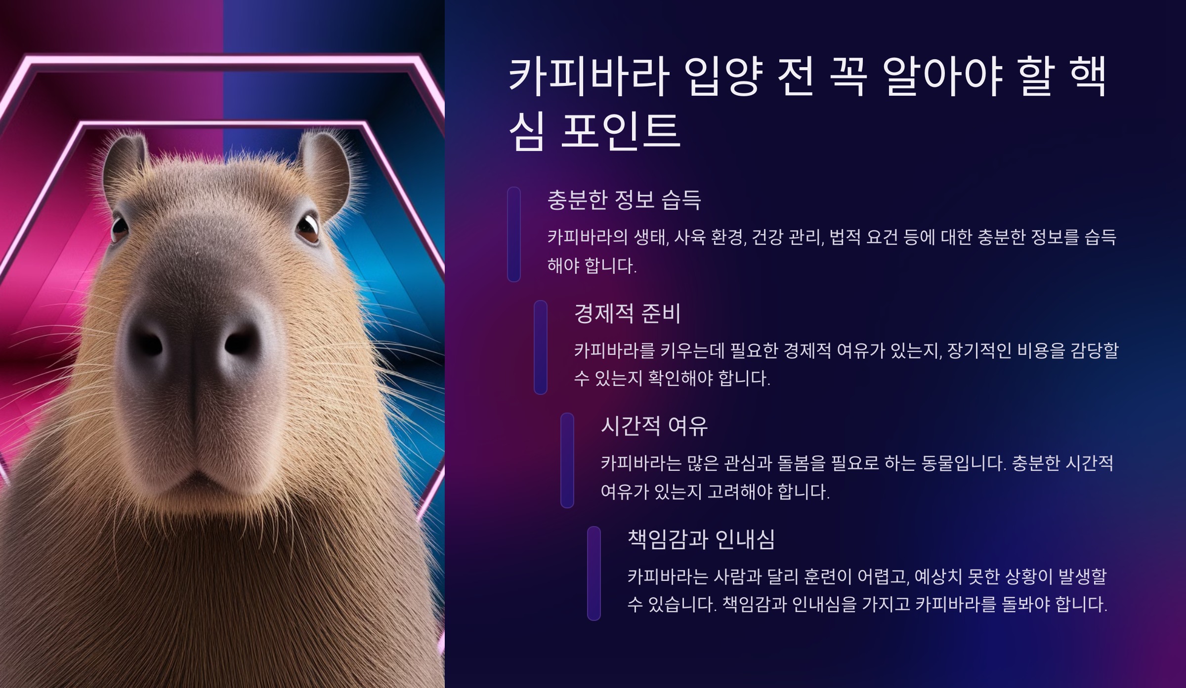 카피바라를 반려동물로 키우는 것은 쉬운 일이 아니지만, 제대로 준비하면 특별한 경험을 할 수 있어요! 🦫
