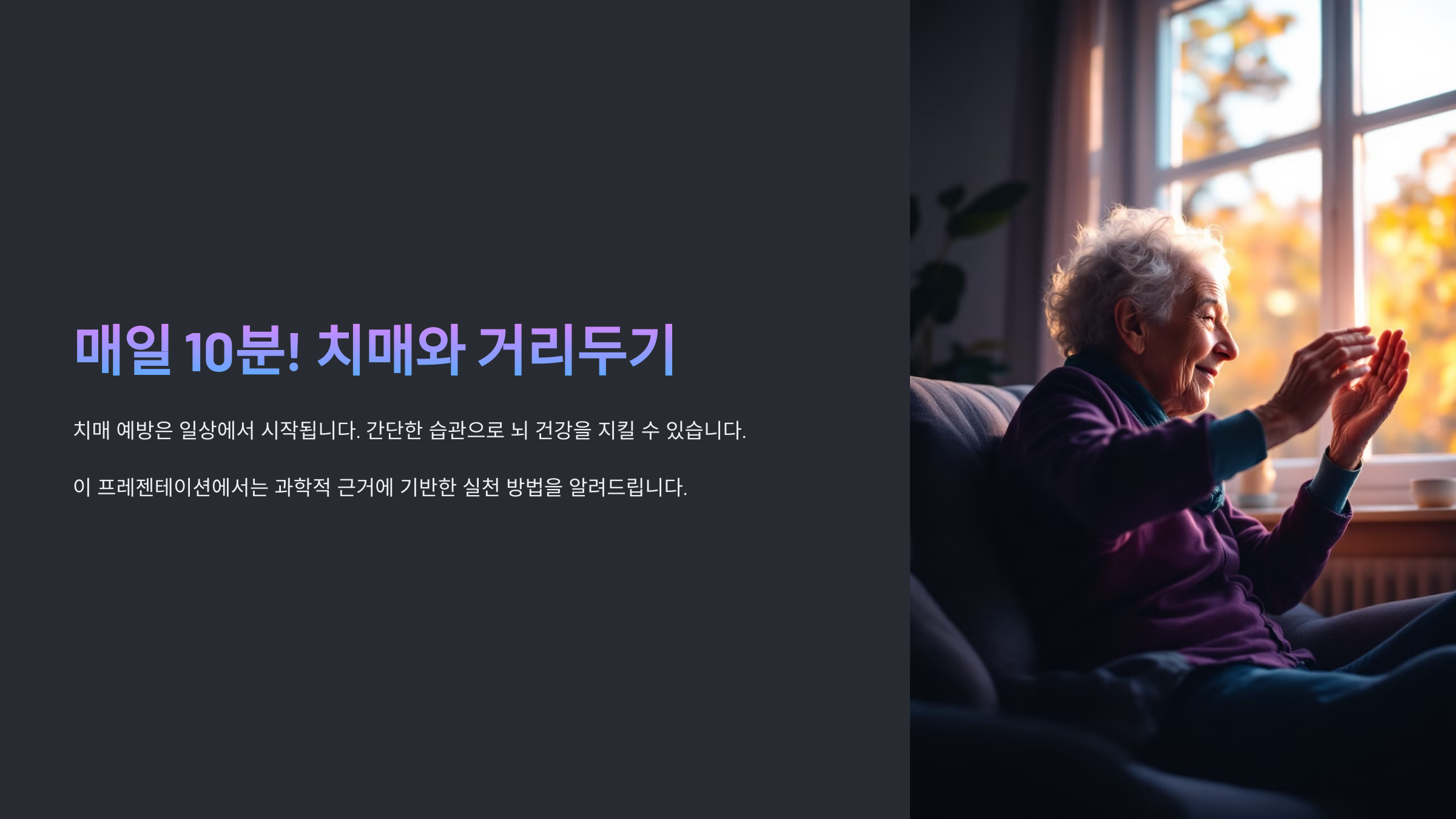 지금 당장 준비 운동 1분, 제자리에서 걷기 3분, 팔 돌리기 3분, 가벼운 스쿼트 3분이면 딱 10분이에요. 그 10분이 뇌에겐 ‘장기 보약’이 될 수 있어요. 내일도, 10년 뒤도 웃고 있는 뇌를 위해 시작해봐요!