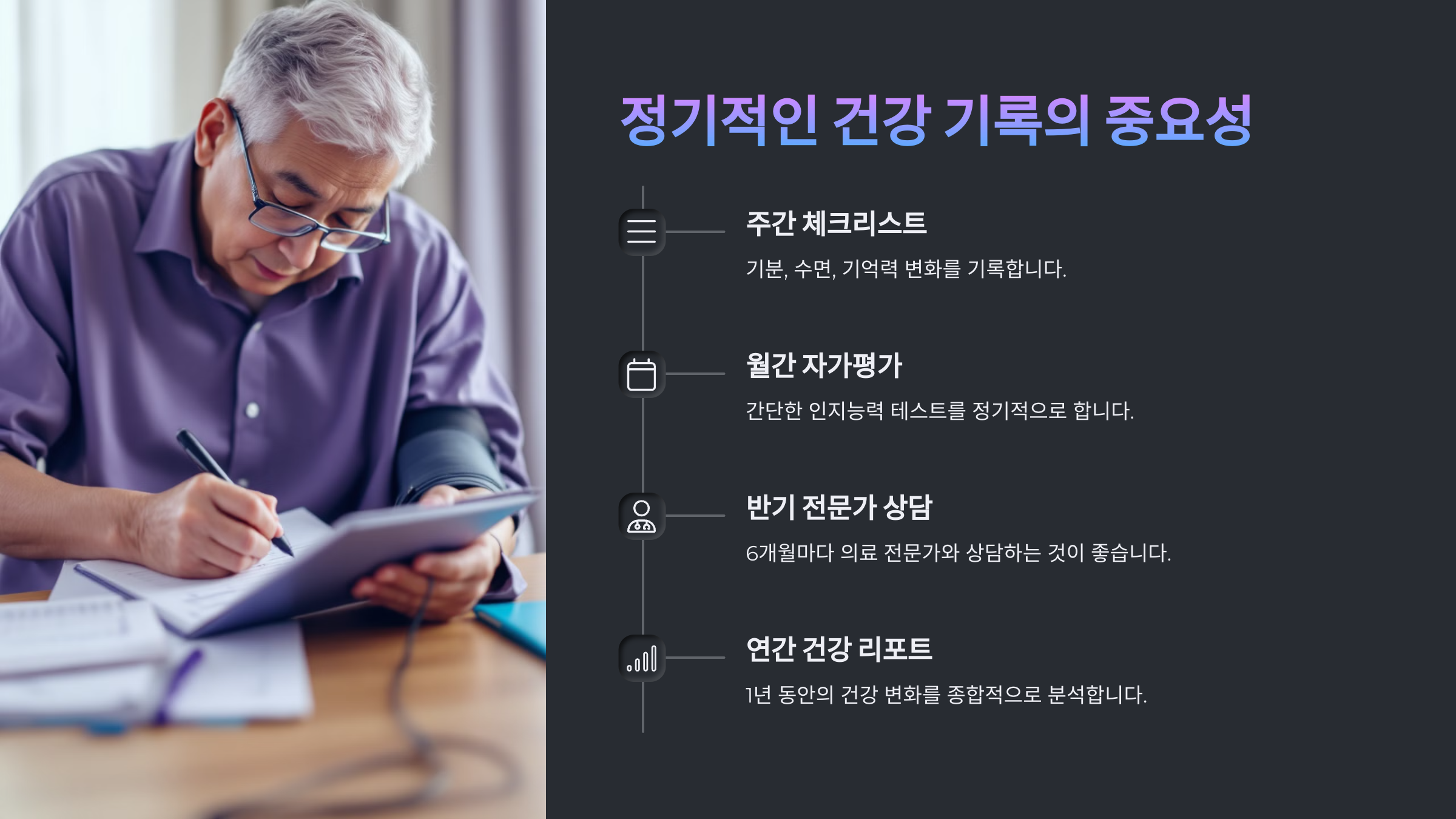 예를 들어, "요즘 자주 깜빡거린다", "약속을 자주 잊는다", "낯선 길에서 자주 헤맨다" 같은 증상이 반복된다면 그냥 넘어가면 안 돼요. 이 작은 변화들이 치매의 초기 신호일 수 있거든요. 기록은 그 신호를 놓치지 않게 도와줘요.