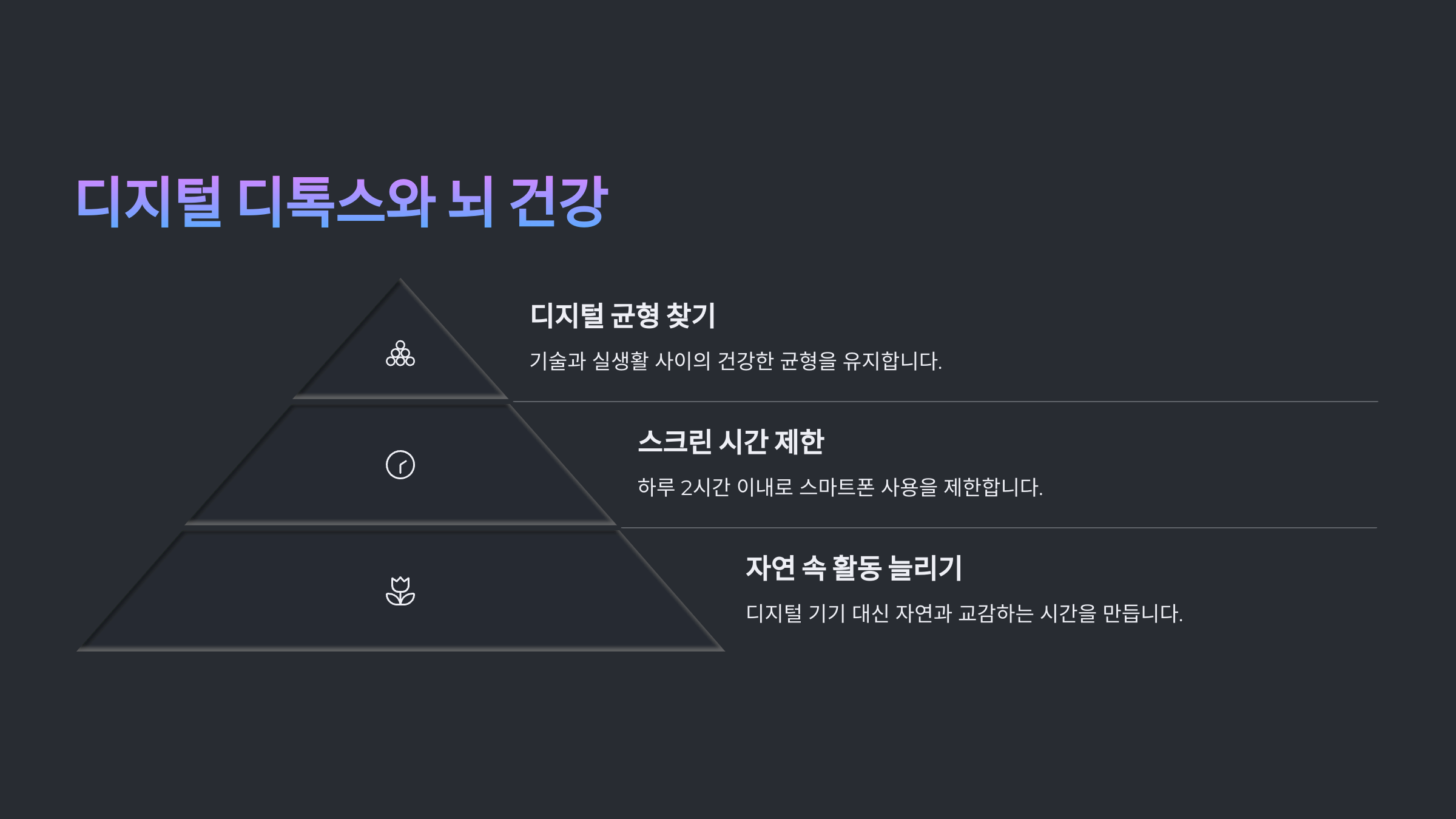 | 디지털 디톡스 후 | 뇌파 안정, 회복력 상승 | 편안함, 사고력 향상 |